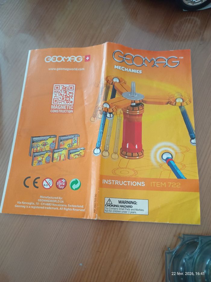 Je vends cette boîte de jeu éducatif Geomag Mechanics, un jeu de construction magnétique. - Type de produit : Jeux éducatifs - Marque : Geomag - Gamme : Mechanics - Âge recommandé : De 7 à 12 ans - Accessoires inclus : Notice État satisfaisant (boire en l'état), la boîte n'est pas complète. Certains éléments sont abîmés (cf. photos). Cela n'empêche pas de jouer N'hésitez pas à me contacter pour plus d'informations sur ce jeu éducatif et magnétique.