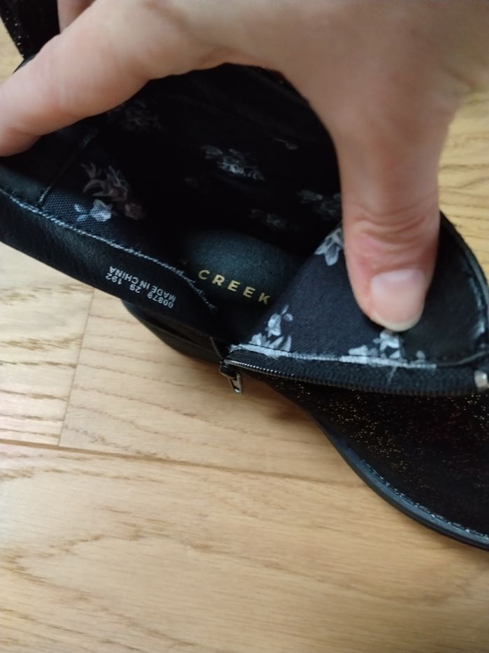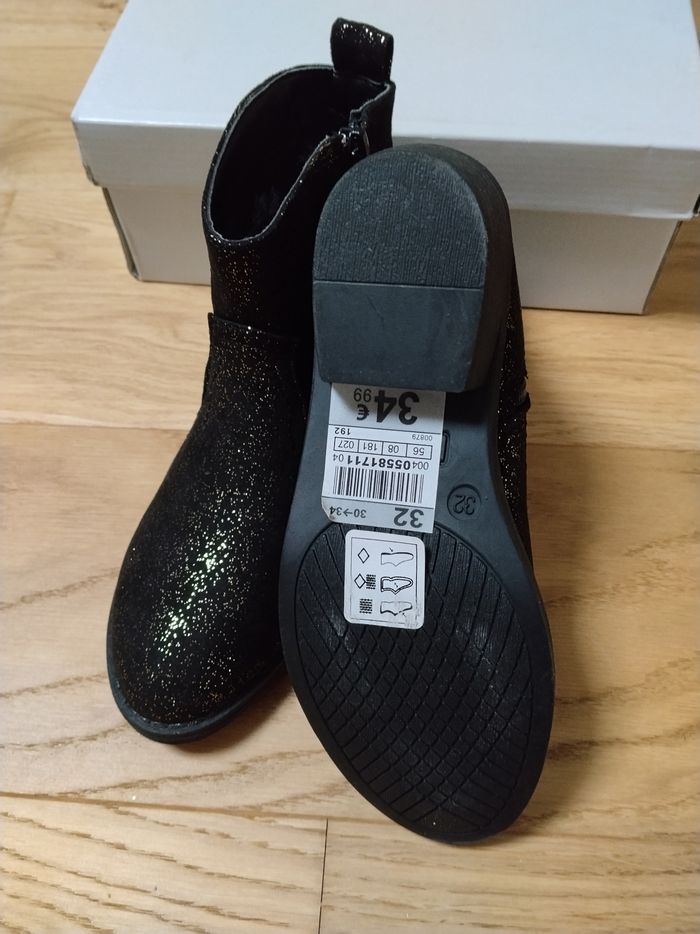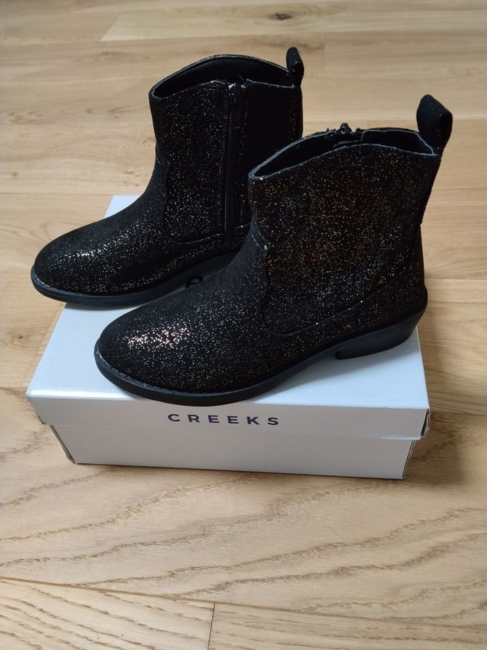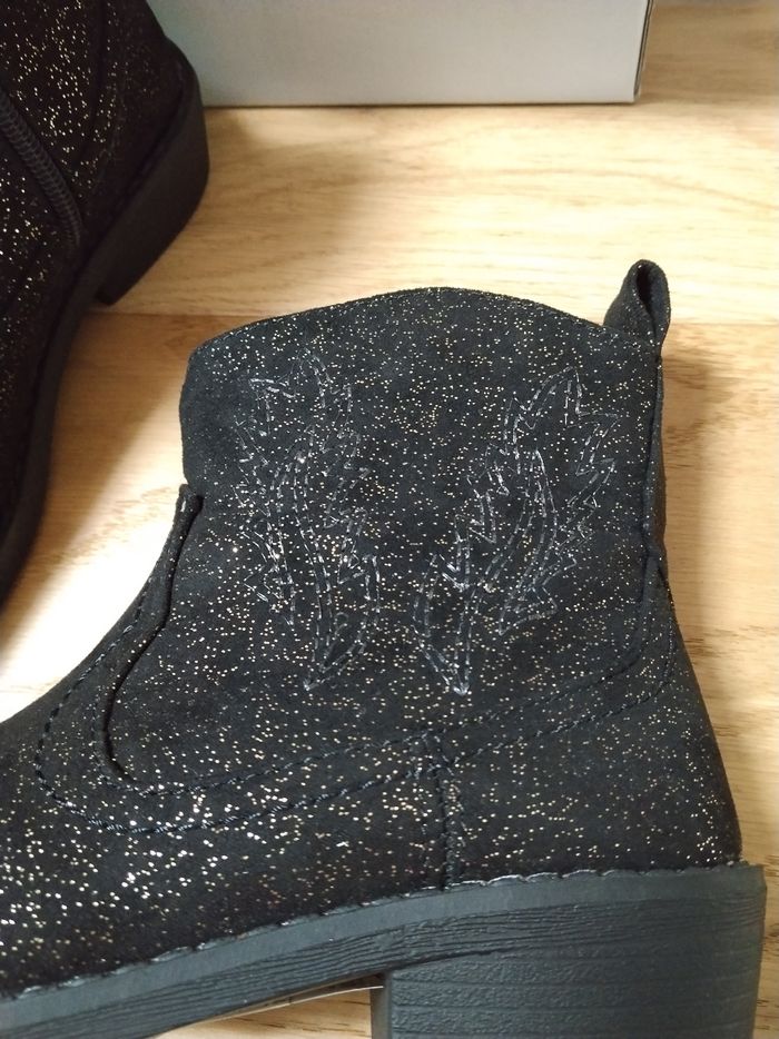 Bottines noires à paillettes avec des ailes sur le côté. Neuve, jamais porté.