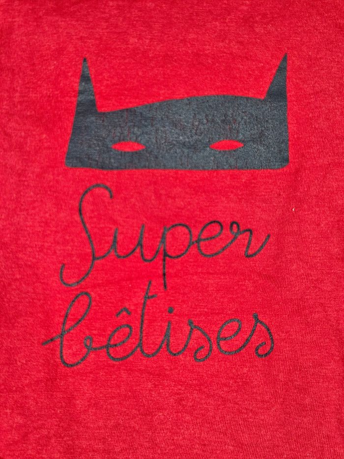 Hello ! 👋 Je te propose cette pièce de la marque Tape à l'œil, une super trouvaille pour le dressing de bébé 👶 Un t-shirt à manches longues rouge super sympa avec son motif malicieux de super-héros et ses petits boutons-pression à l'épaule bien pratiques ! Informations utiles: * 👕 Article : T-shirt à manches longues avec boutons-pression sur l'épaule * 📏 Taille : 6 mois (68 cm) * 🌈 Couleur : Rouge avec inscription et motif noirs * 🧵 Matière : 100% coton * ✨ État : ⭐⭐⭐⭐ Les petits + : 🏡 Logement non fumeur et sans animaux. 📦 Envoi rapide et soigné. N'hésite pas si tu as la moindre question ou si tu veux d'autres photos ! Je suis là. 😉 #tapealoeil #tshirtbebe #taille6mois #rouge #superheros #coton #vetementbebe #automne #tresbonetat #garcon