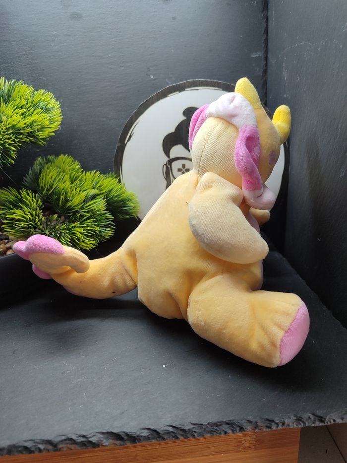 Doudou dinosaure tricératops rhinocéros peluche jaune rose pedro Ancien Boule - photo numéro 3