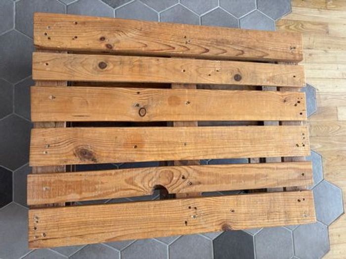 Vends table basse fabriquée en bois de palettes, traitée et cirée, montée sur 4 roulettes. En très bon état, effet vieilli. Dimensions 85cm x 60cm x 35cm À venir retirer à Sucy-en-Brie, pas de livraison.