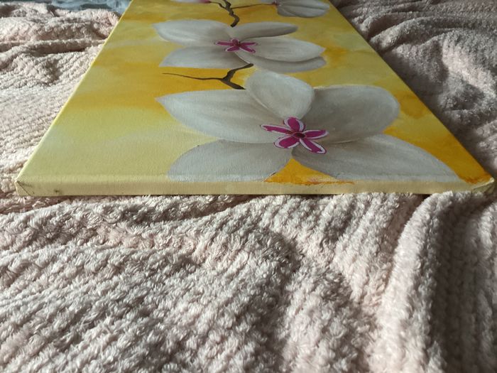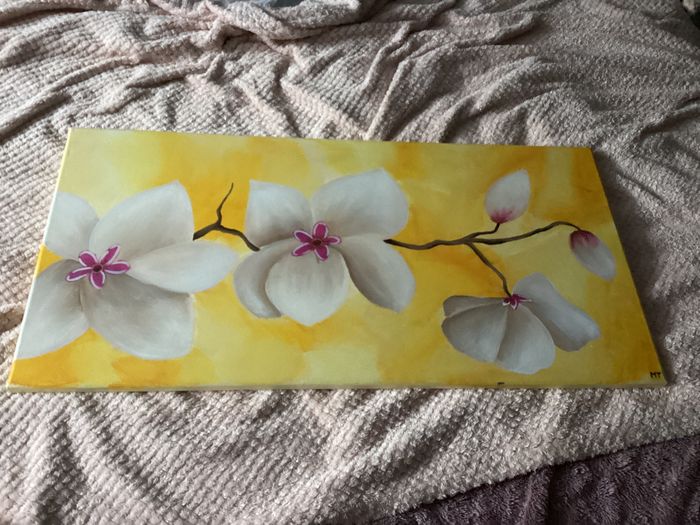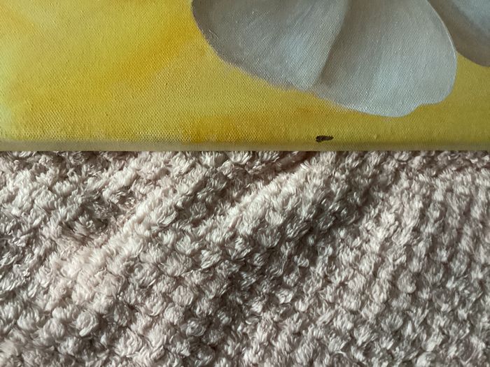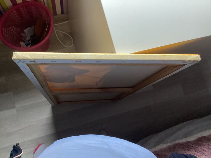 Vend tableau dans son etat Car trop grand pour moi et si cela peut plaire a quelqu’un Il fait : 80 x 40 J’ai precise sur la photo le mini defaut