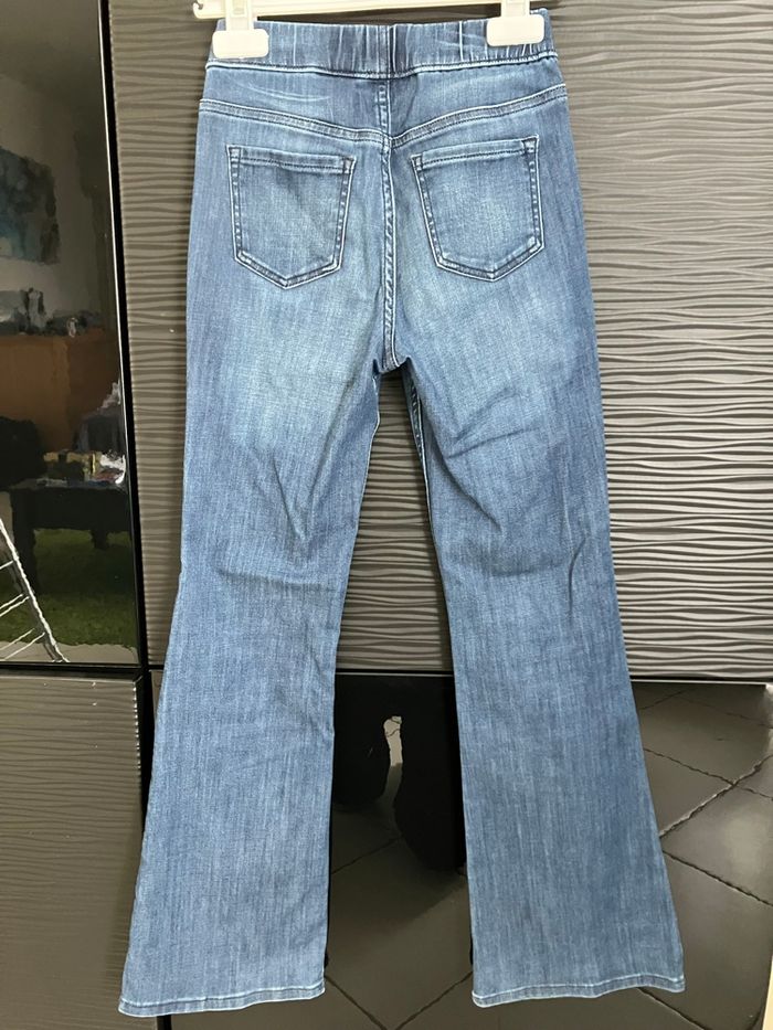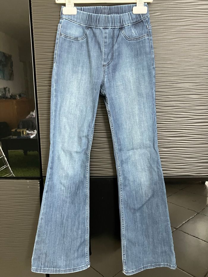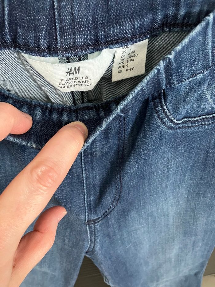 Jean flare bleu foncé, taille élastique, deux poches arrière, 64% coton 34% polyester 2% elasthane, de marque H&M, de taille 8-9 ans (134 cm) Très bon état