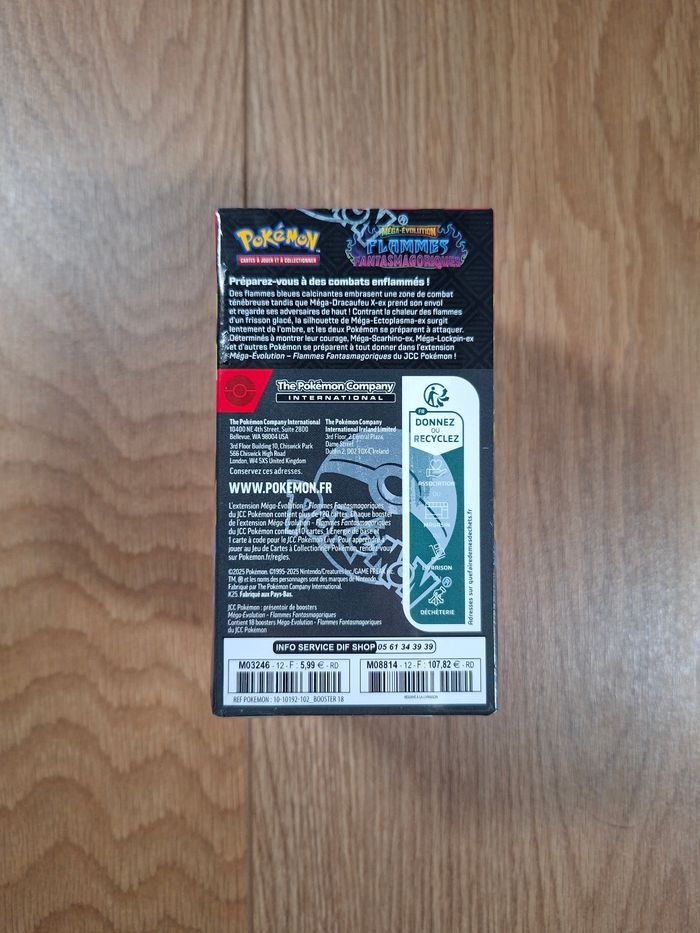 Demi-display Pokémon Me02 Flammes Fantasmagoriques 🗒 État : léger défauts visibles sur les photos. Livraison : 🚚 Envoi soigné sous 24–48h, emballage protégé. 📌 Remise en main propre possible dans les départements 78, 92 et 75. 🤝 N’hésite pas à me contacter pour plus d’infos ou de photos !
