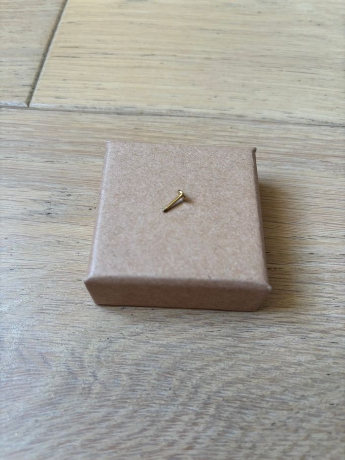 Tige pour piercing labret dorée, longueur 6mm, épaisseur 1,2mm, filetage externe. Acier chirurgical. Parfait état.