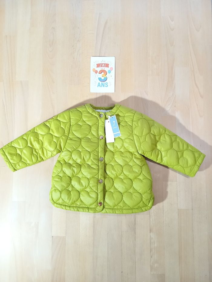 Adorable, veste de la marque Jacadi, taille 3 ans 98 cm. Achetée pour ma fille l’année dernière, je n’ai pas eu le temps de la lui mettre malheureusement. Elle est donc encore neuve et étiquetée. 🏷️ 🌸 Idéale pour l’arrivée du printemps 🌸 Coloris, vert pomme, matelassée avec sur surpiqûre en forme de cœurs 💕 et intérieur chaud, matière déperlante ☔️ N’hésitez pas à consulter mes autres annonces, je commence à peine les publications 3 ans printemps / été. Article 100 % fille dans mon dressing, taille 24,36 mois ainsi que le 3 ans. Livraison rapide et soignée.