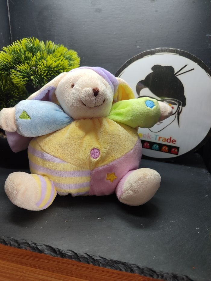 lapin boule jaune vert bleu bonnet CMP violet  beige crème rose Rayé Doudou  - photo numéro 1