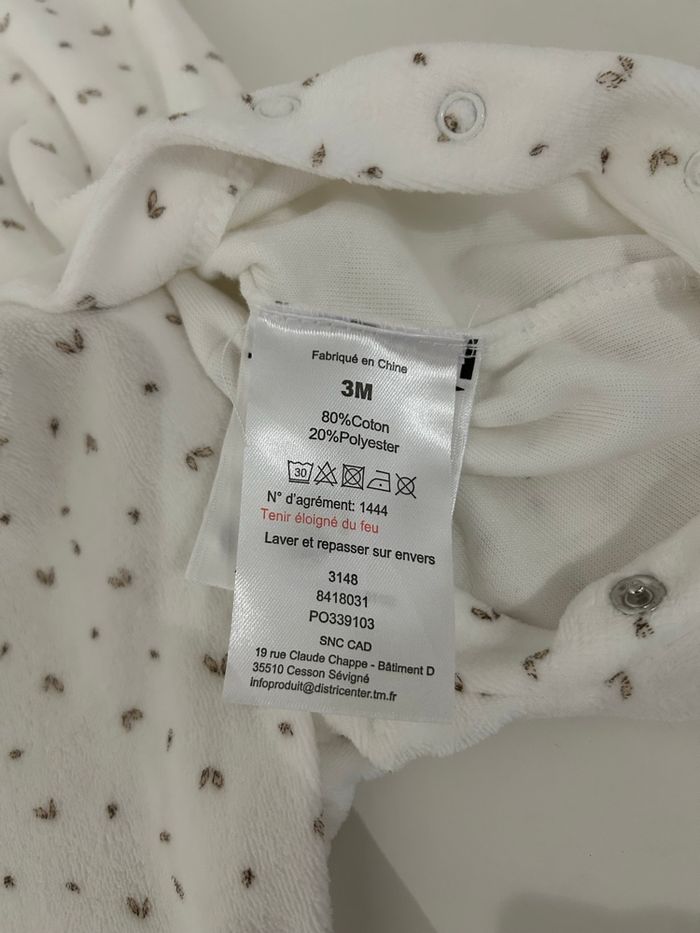 Pyjama acheté en double sans faire attention , jamais porté, taille 3mois, il y a encore l’étiquette qui fait biper les magasins