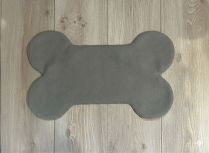 Tapis pour chien ou chat pour le repas En forme d'os Sur le dessus, revêtement en pul, matériau imperméable Sur le dessous, revêtement polaire Lavable en machine Dimensions : 53 cm de longueur pour 33 cm au plus large