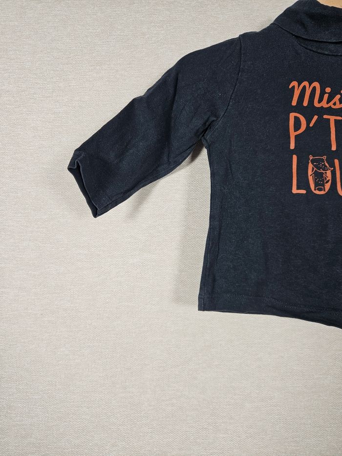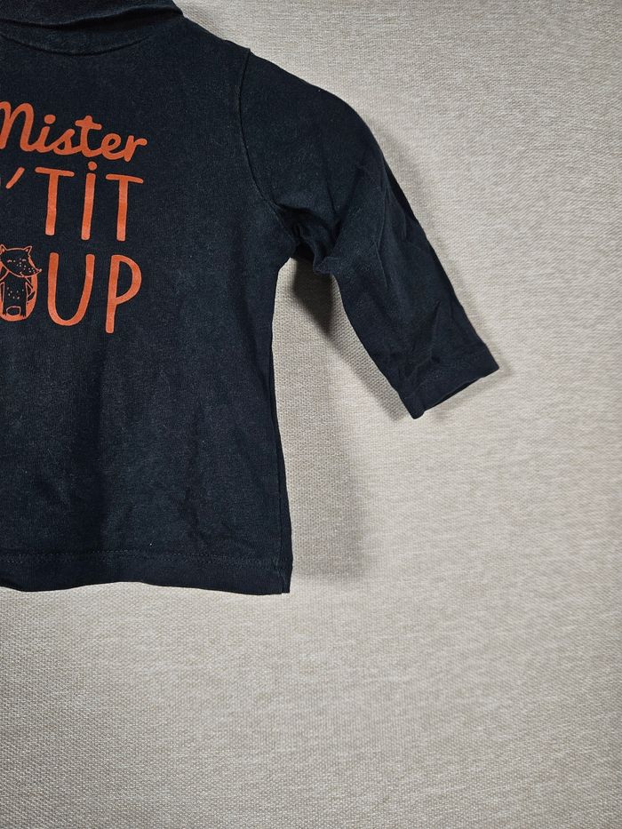 Hello ! 👋 Je te propose cette pièce de la marque Tape à l'œil, une super trouvaille pour le dressing de bébé 👶 Un t-shirt à manches longues à col roulé super sympa avec son inscription craquante "Mister P'tit Loup", parfait pour garder ton petit bout bien au chaud avec style ! Informations utiles: * 👕 Article : T-shirt à manches longues avec col roulé * 📏 Taille : 6 mois (68 cm) * 🌈 Couleur : Bleu marine foncé avec lettrage et motif orange * 🧵 Matière : 100% coton * ✨ État : ⭐⭐⭐⭐ Les petits + : 🏡 Logement non fumeur et sans animaux. 📦 Envoi rapide et soigné. N'hésite pas si tu as la moindre question ou si tu veux d'autres photos ! Je suis là. 😉 #tapealoeil #tshirtbebe #taille6mois #bleumarine #colroule #coton #vetementbebe #automnehiver #tresbonetat #garcon