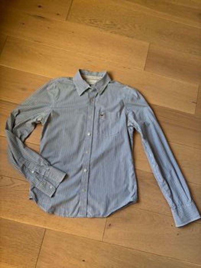Chemise rayée bleue et blanche taille M de la marque Hollister. En très bon état.