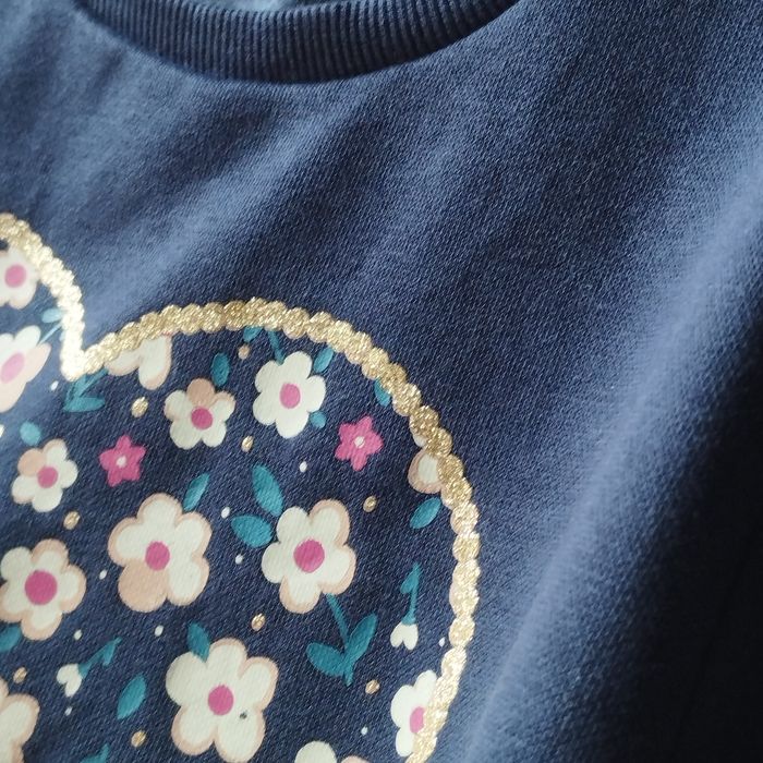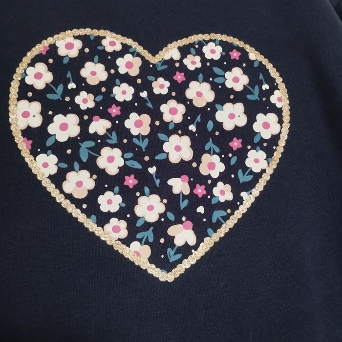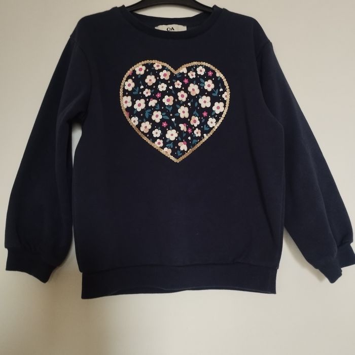 Pull pour fille de 7ans, de chez C&A. Intérieur polaire. Bleu marine Tour du cœur doré. Neuf jamais porté.