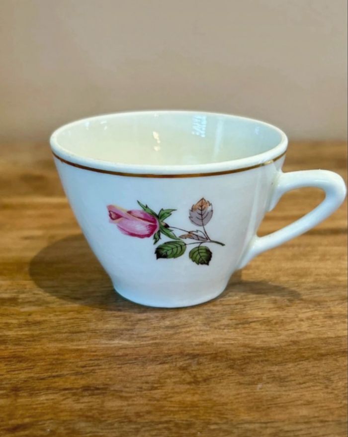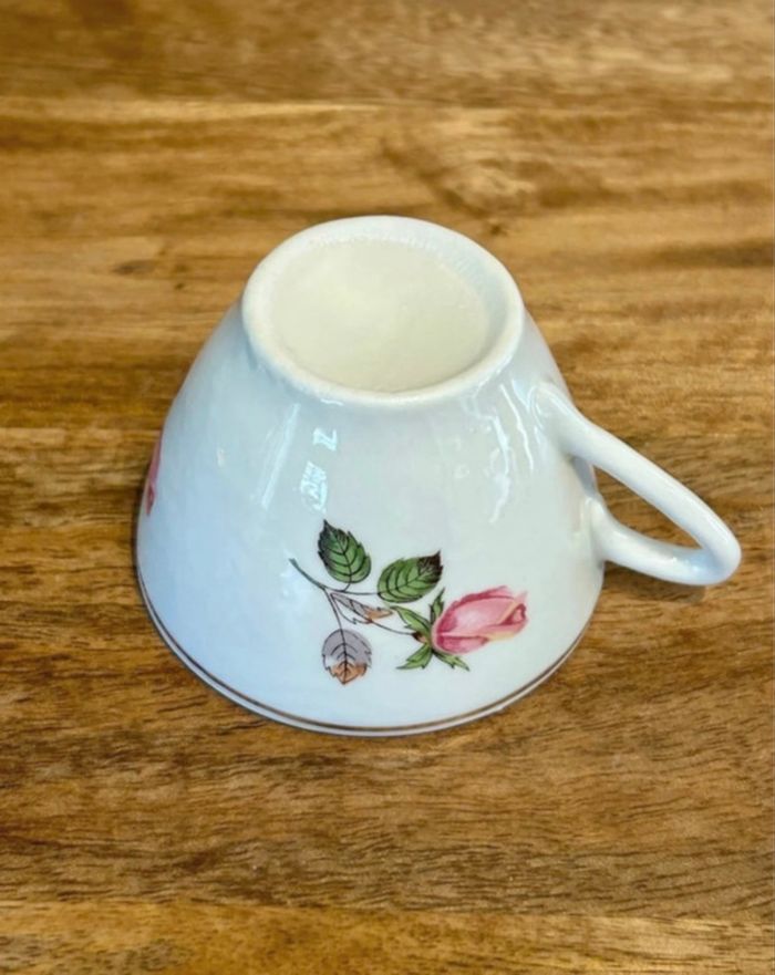 Jolie tasse à café en porcelaine Motif fleur : rose Hauteur 5 cm
