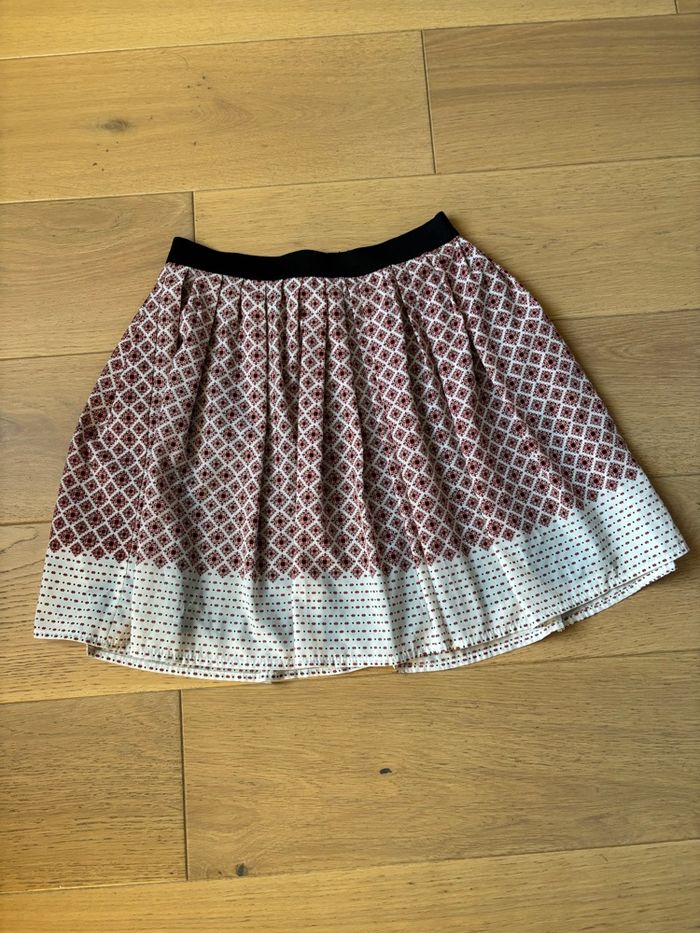 Jupe évasée rouge, blanche et noire. En très bon état.