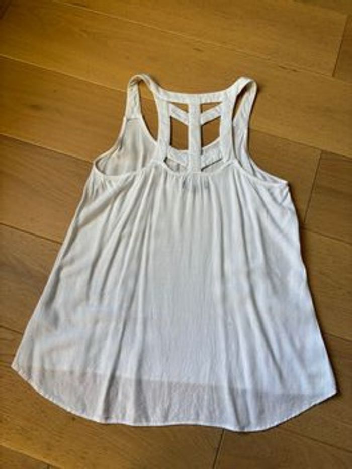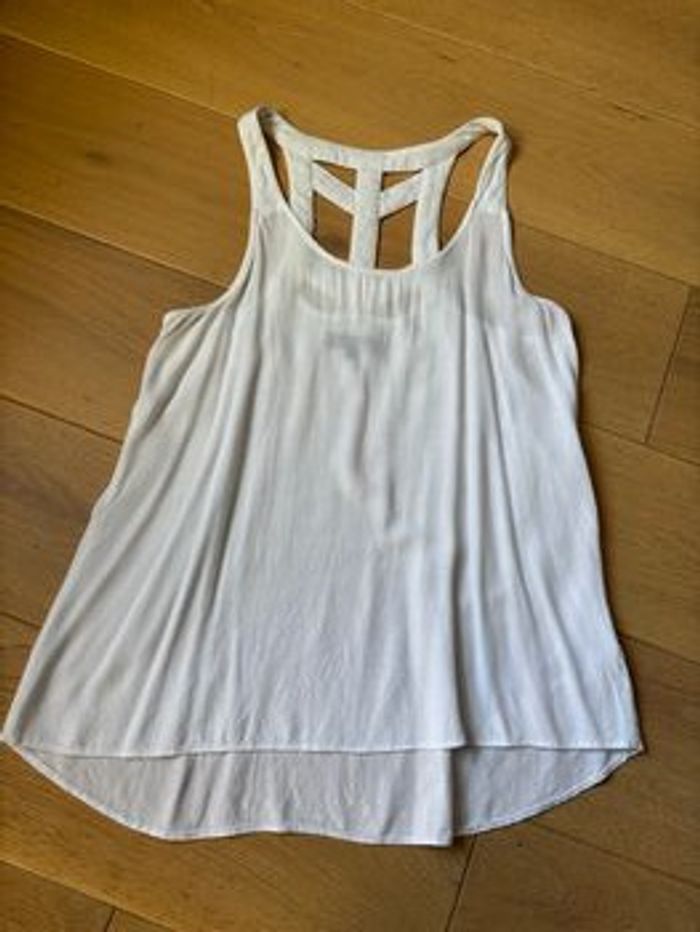 Débardeur blanc, dos ajouré. En très bon état.