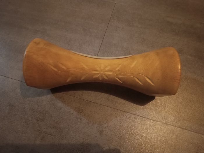 Il suffit de glisser son smartphone au milieu et le bois et sa forme diffusent le son. Longueur 25 cm, diamètre 10 cm