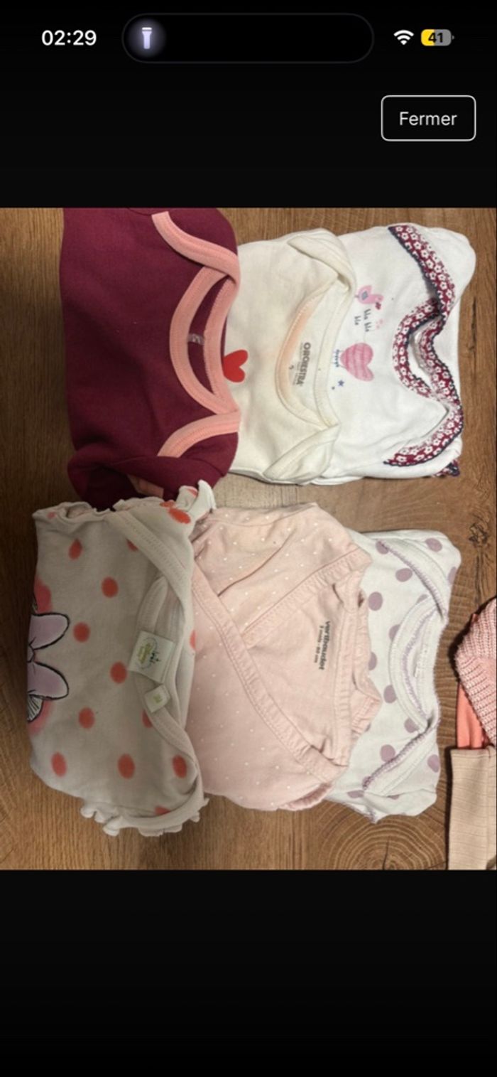 vêtement non taché, non troué et toutes les pressions ferme parfaitement . Vêtements mis peu de fois propre de différentes marques. Ils feront le bonheur de vos loulous☺️
