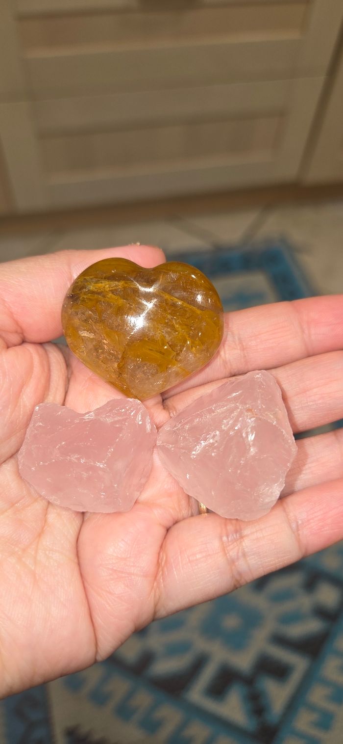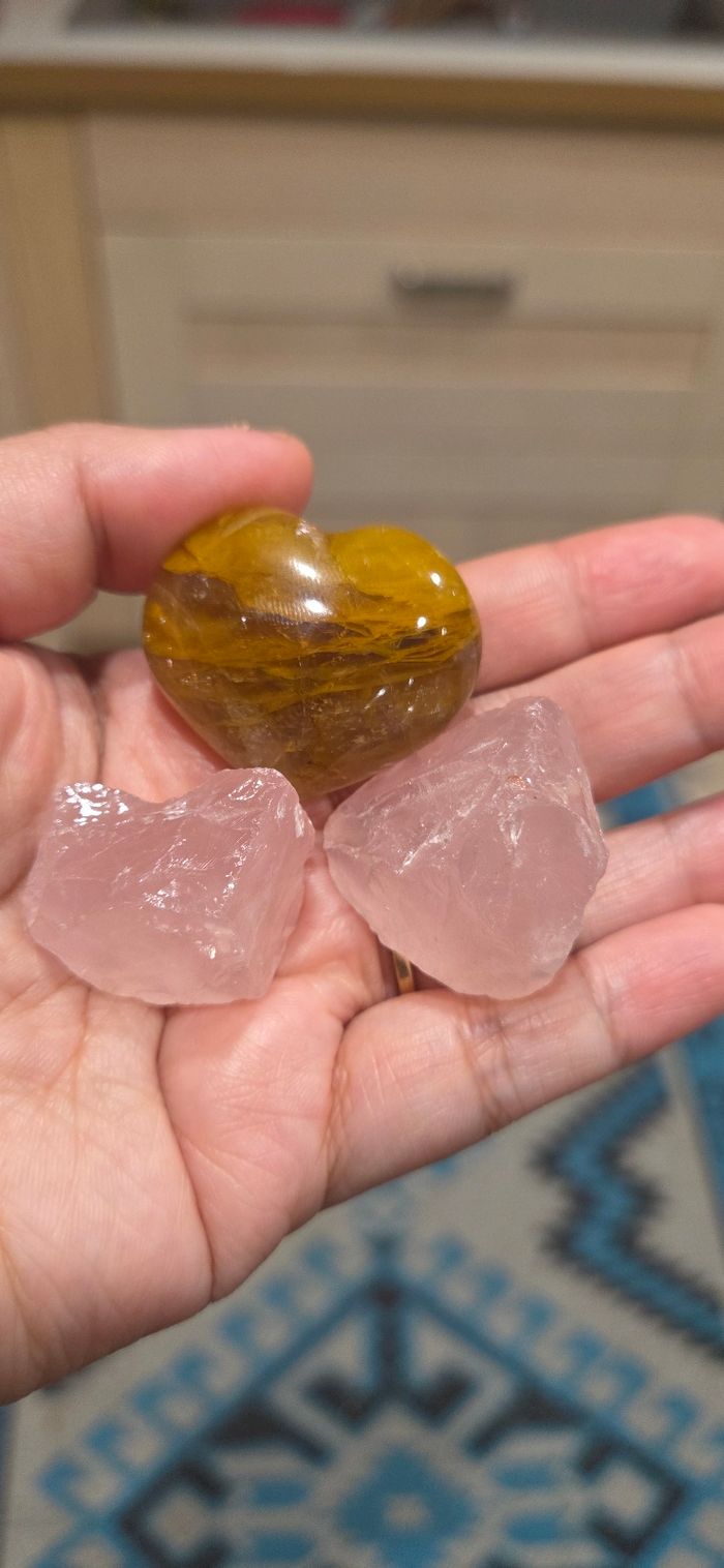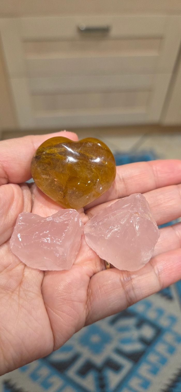 Cristaux mélangés 2 - cœur guérissuer doré - quartz rose brut