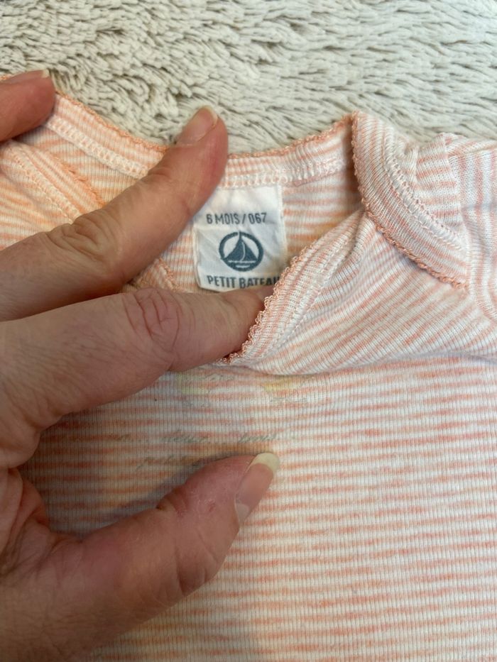 Bodies manche courte à rayure rose orange Taille 6 mois Très bonne état Petit Bateau