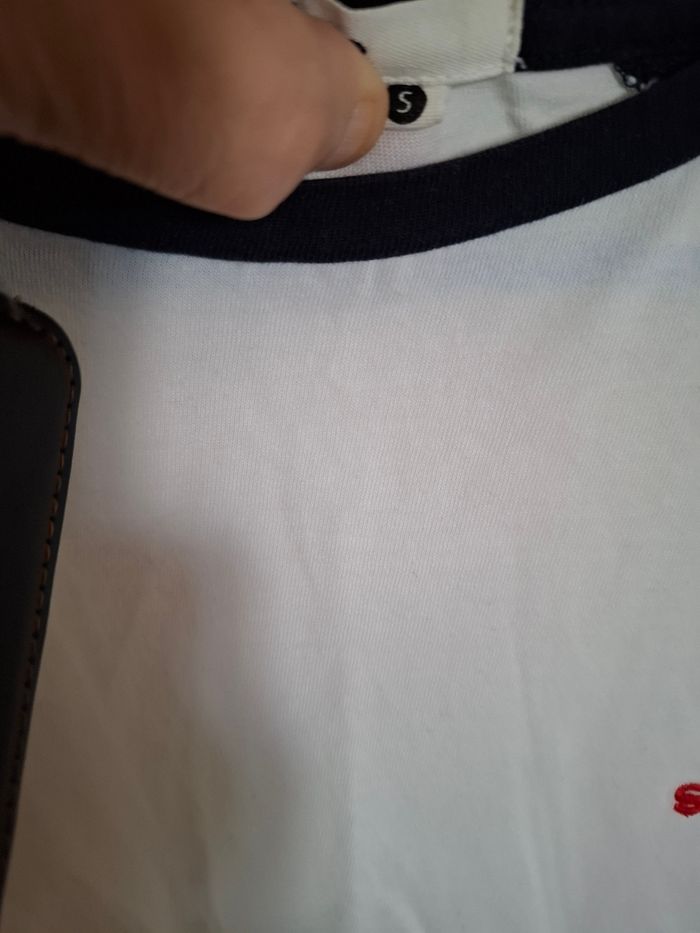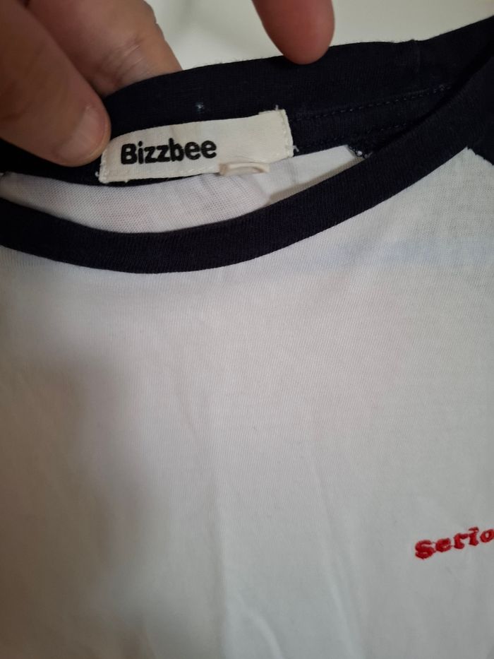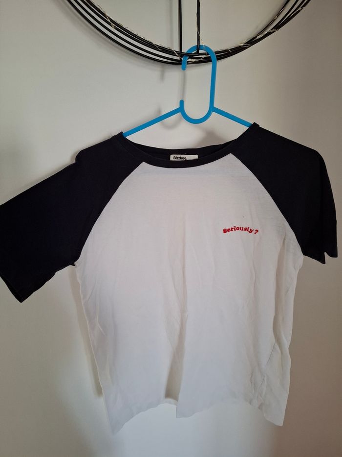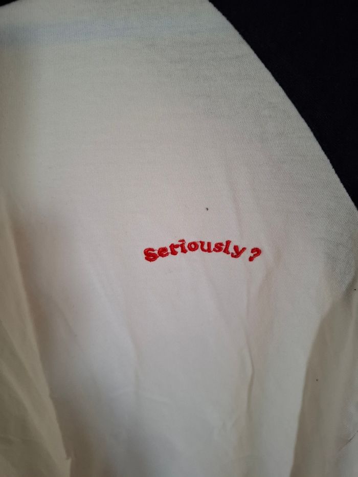 Tee shrist simple pour le printemps une petite ecriture sur la poitrine les manches bleu marine avec le col sympa a porter aussi