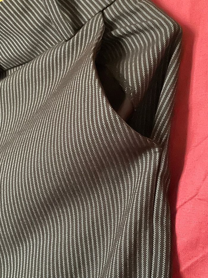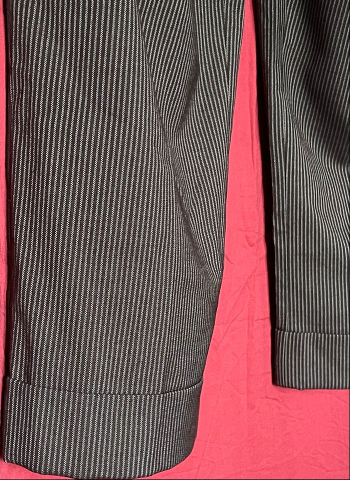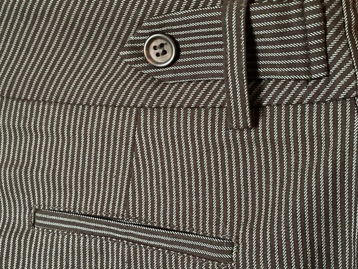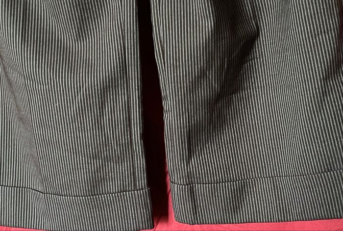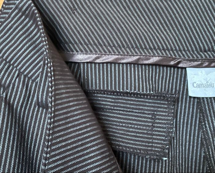 Ce pantacourt Camaïeu, intemporel se démarque avec ses fines rayures grises & noires, sur une matière élégante et confortable ! Avec sa longueur qui dévoile la cheville, c'est toute votre féminité qui sera mise en valeur ! La ceinture plate et large de 5 cm, donne un effet ventre plat, affine la silhouette. Entrejambe 50 cm environ, peut se porter avec des bottes, boots ou mocassins, selon les saisons et/ou la tendance Composition : 65% polyester, 3% élasthanne, 32% viscose • Coupe 7/8 ème fuselée qui élance l'allure • Ceinture plate devant et dans le dos avec une finition à l’intérieur en satin noir, très joli, élégant. • Ceinture plate avec 4 passants et 4 boutons Une fermeture éclair + 1 bouton à l’intérieur. • 2 poches devant (10X15cm) • 2 fausses poches au dos • Revers de 5cm en bas de jambe Taille : 38 Couleur : noir avec rayures grises Comme neuf/ jamais porté / sans étiquette
