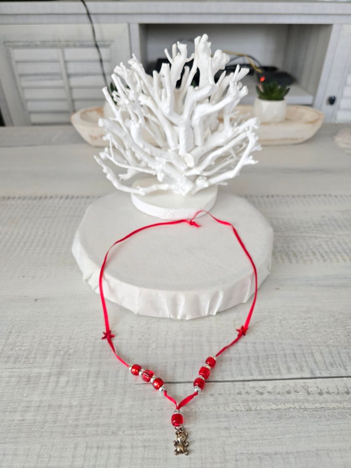 Collier rouge pendentif ourson enfant  - photo numéro 4