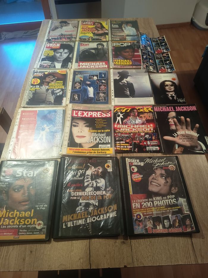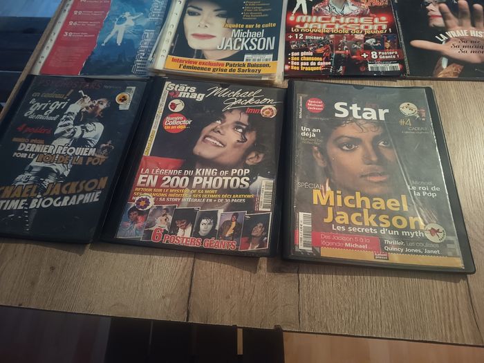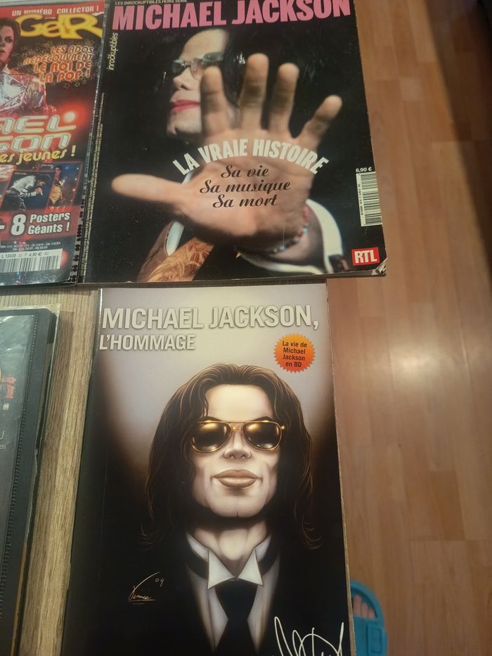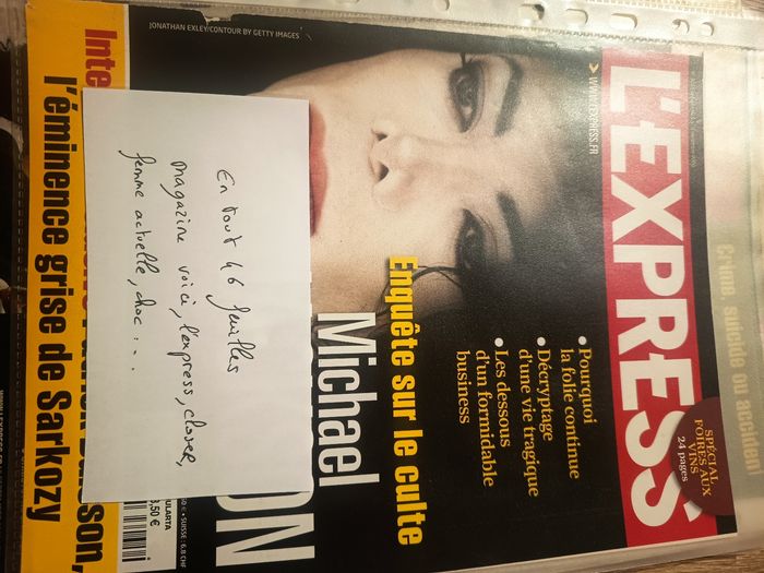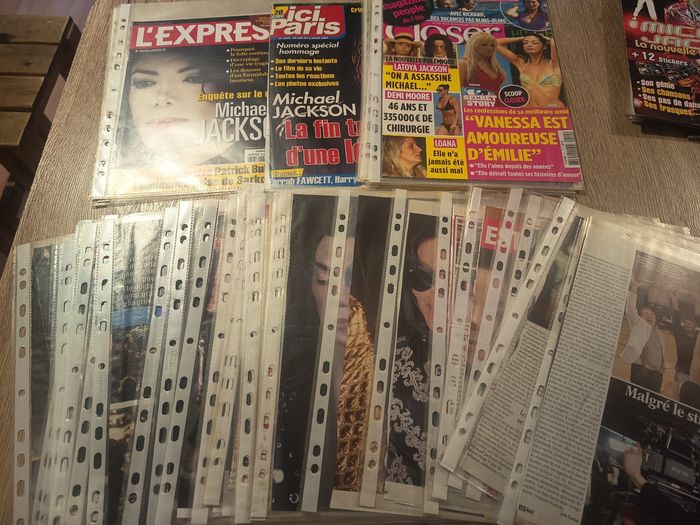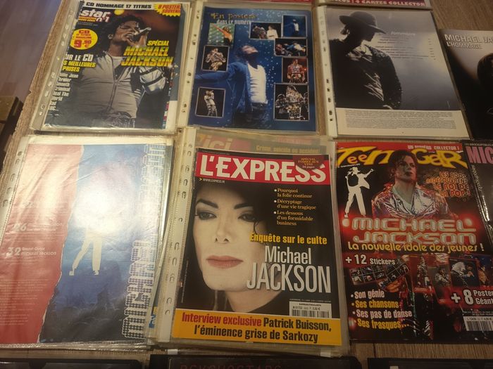 Bonjour je vends 14 magazines plus un double complet de Michael Jackson plus 46 feuilles de magazine toutes marques L'Express ,Closer, Femme actuelle, choc... Dans le Lot vous avez : -7 magazine complet sous pochette transparente -3 magazines complet sans la couverture du magazine -3 magazines complets dans une protège document (30feuilles) -de magazines en très bon état teenager et inrockutibles -un magazine complet et un autre en double où il manque la couverture du livre prise en photo magazine teenager - une BD et deux autocollants les mêmes -46 feuilles de magazine toutes marques closer, Femme actuelle ,choc ,L'Express....