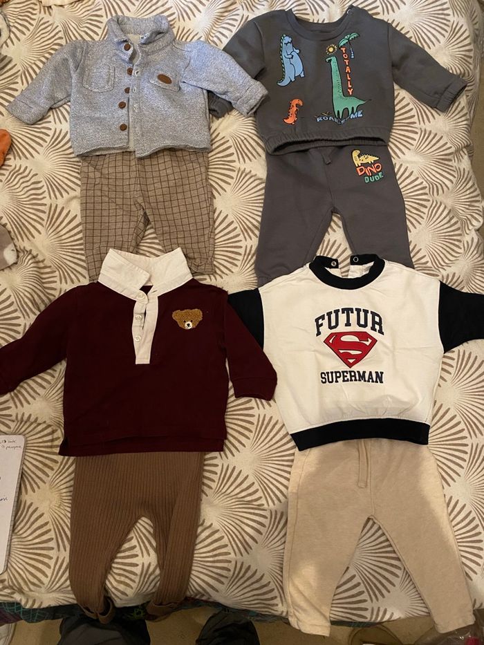 A vendre 16 ensembles, 17 pyjamas, 8 bodies en taille 6 mois toutes marques. En tres bon etat, tout est lavé. Je ne vends pas au détail. Le prix est pour le tout. Tout est visible sur les photos.
