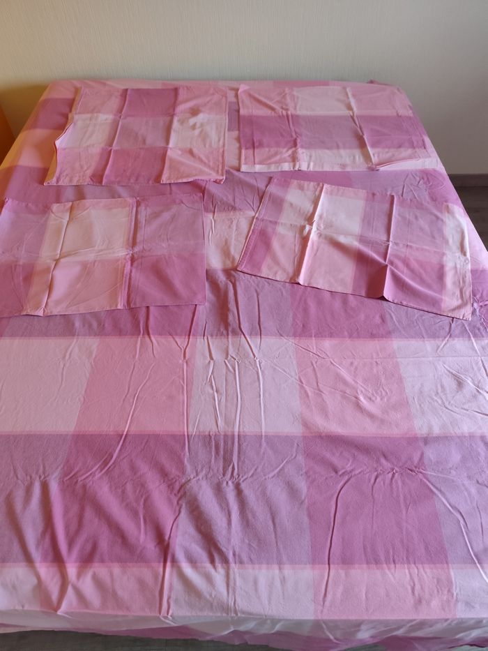 Vend cet ensemble comprenant une housse de couette réversible 240x260, 2 taies 63x63 et 2 taies 50x70 Très bon état Remise en main propre ou frais de port a charge de l'acheteur
