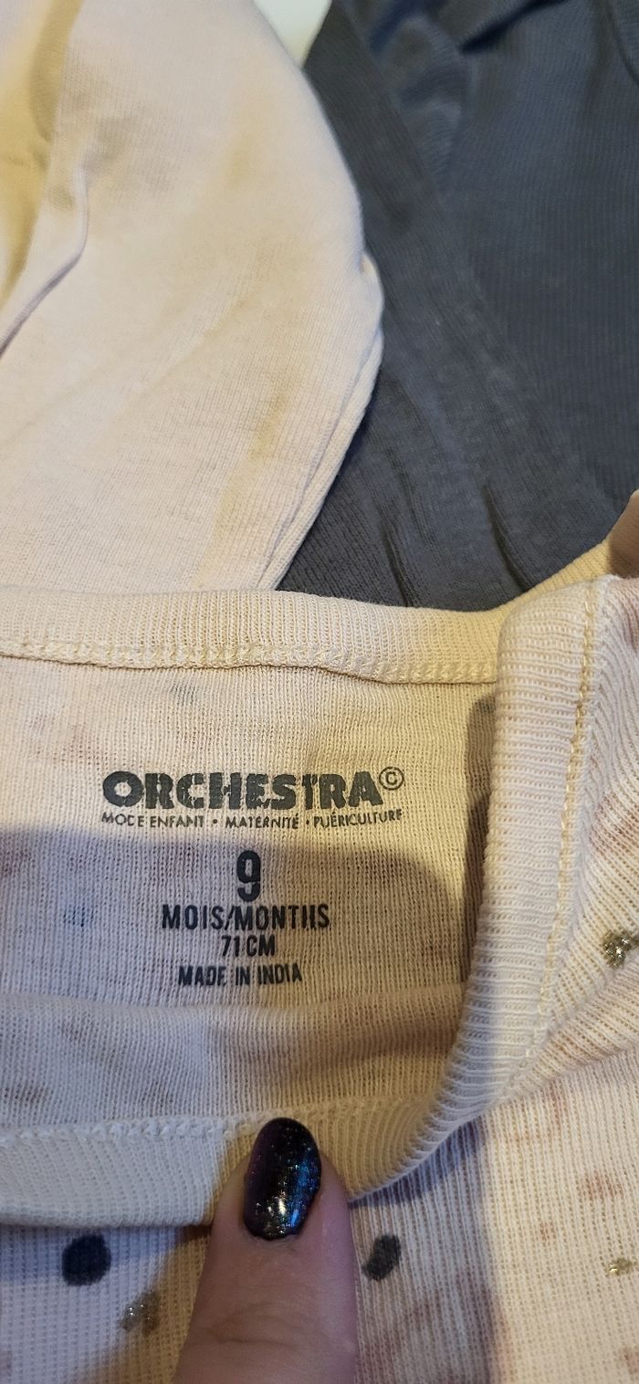 Lot 4 bodies manches longues 9mois peut présenter de légères traces au col sur certains