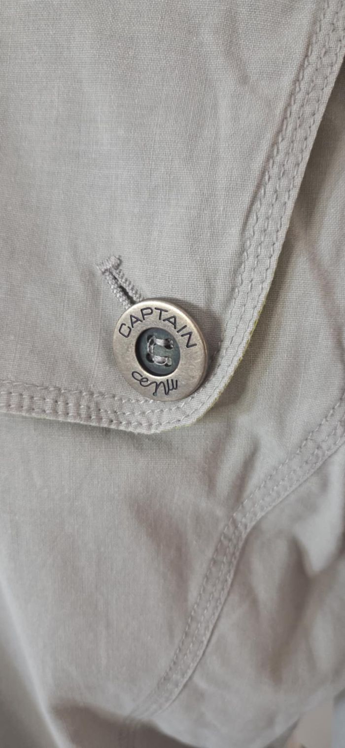 💎 Description Superbe trench MISS CAPTAIN coloris gris clair / gris perle, élégant et facile à assortir. Modèle court style trench avec : ✔ Double boutonnage ✔ Ceinture à nouer pour marquer la taille ✔ Pattes de serrage aux manches ✔ Empiècement dos avec boutons ✔ Doublure intérieure vert anis signature Confection en 100% coton, matière naturelle, respirante et agréable à porter. Coupe féminine et structurée qui sublime la silhouette. 💬 Les modèles similaires de la marque étaient proposés en boutique autour de 80 € à 110 € selon collection. Une pièce intemporelle idéale pour la mi-saison, printemps ou automne 🤍 📌 Informations essentielles Marque : MISS CAPTAIN Taille : 38 Longueur : 71 cm Largeur sous bras : 42 à 54 cm Matière : 100% coton État : Excellent état, peu porté ✅ 🌟 Pourquoi vous allez l’adorer ? ✔ Coupe féminine et élégante ✔ Couleur moderne facile à associer ✔ 100% coton (qualité & confort) ✔ Style intemporel ✔ Excellent état 📦 Envoi rapide et soigné La couleur du vêtement peut légèrement varier en raison des conditions d’éclairages. Veuillez examiner attentivement les photos, les détails et les mesures fournies. Pour toutes informations complémentaires n'hésitez pas à me contacter.
