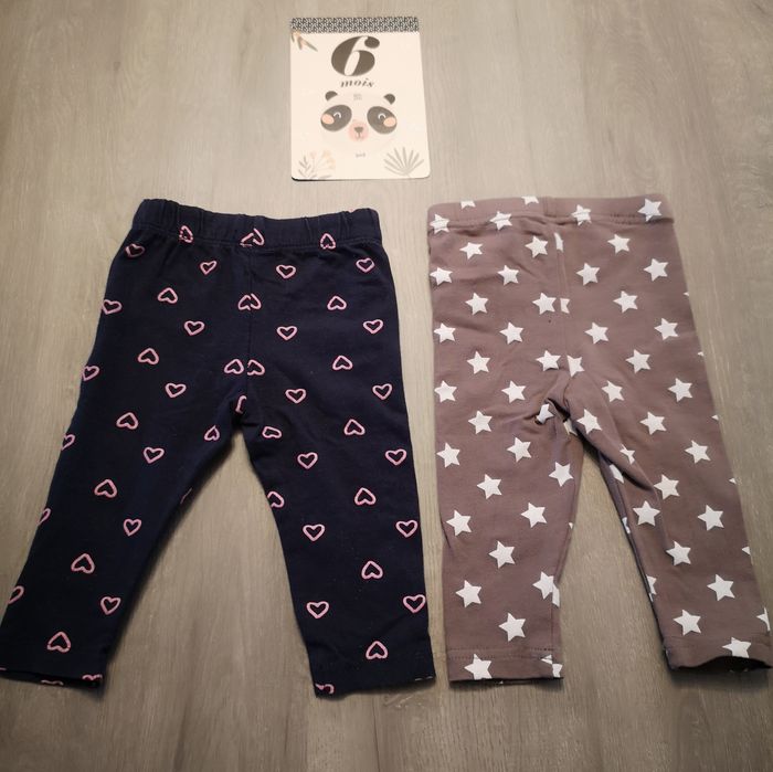 Lot de 2 leggings 🎨 Couleur taupe avec des étoiles et couleur bleu marine avec des cœurs 📏 Taille 6 mois 🏷️ Marque TeX baby et l'autre l'étiquette est effacée 📃 En très bon état général N'hésitez pas à aller voir sur ma vitrine je fais des prix pour les lots et tous les articles sont classés par catégorie pour faciliter les recherches 🤗 Si vous avez des questions je suis disponible Bon shopping à vous 🛍️🛒 #vetement6moisbernardcindy12