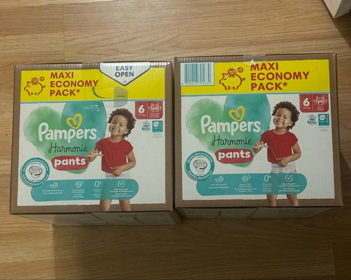 Je vends un lot de 2 cartons de couches Pampers Harmonie Pants , taille 6 (15+ kg). Format Maxi Economy Pack – 120 couches. ✔️ 12h de protection ✔️ Idéal pour la nuit ✔️ Paquets neufs, jamais ouverts Prix : 38€ le lot N’hésitez pas à me contacter si vous avez des questions 😊