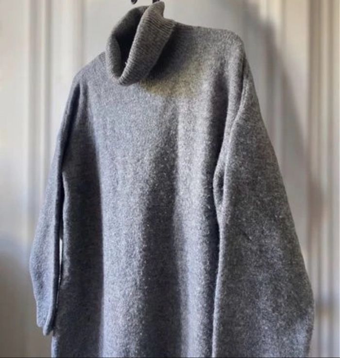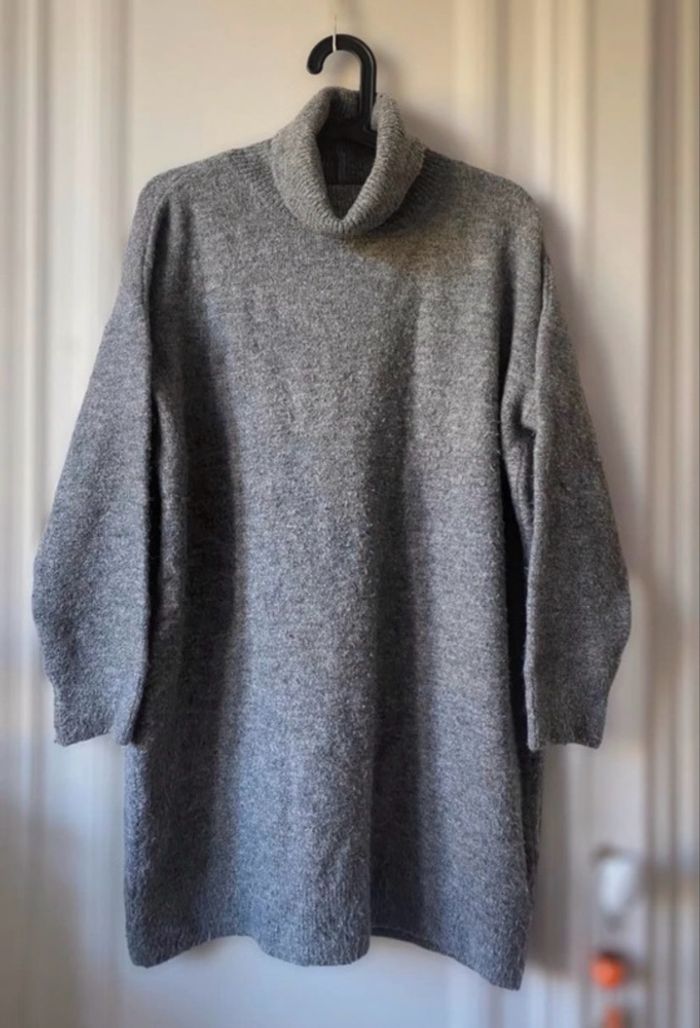 Robe pull, col roulé très peu portée , en très bon état, longueur 80 ( jusqu'aux genoux ) largeur 60 épaules à épaules 60
