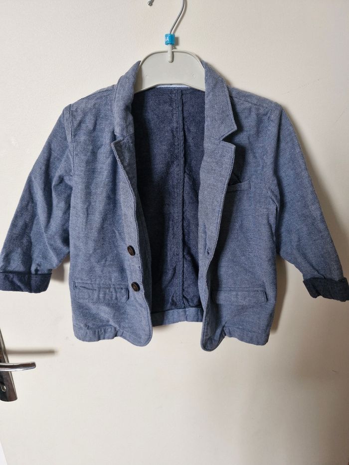 Bonjour je vend un petit blazer de la couleur bleu clair avec des boutons marron de la marque Gémo en taille 36 mois parfait pour un évènement de fête . En bonne état .