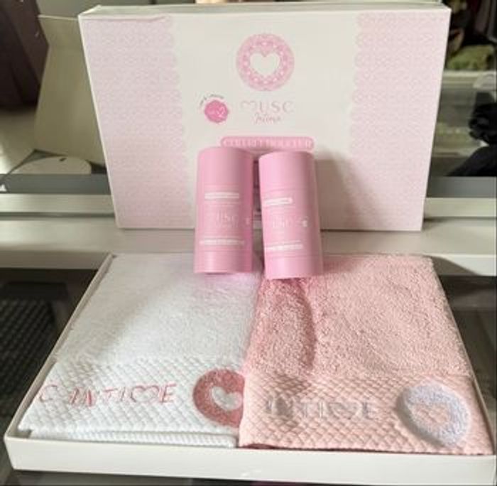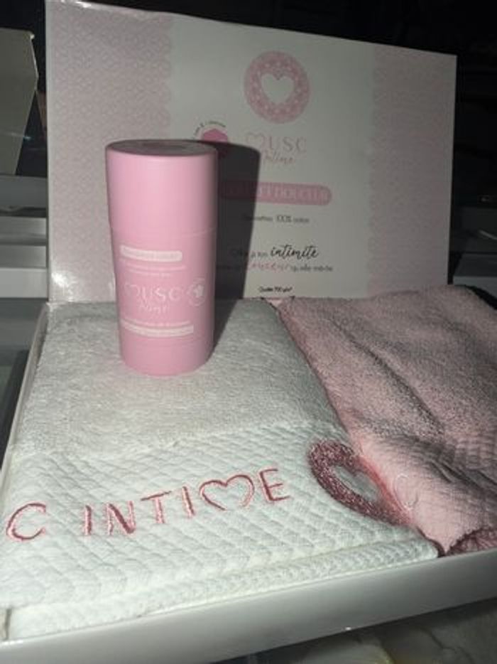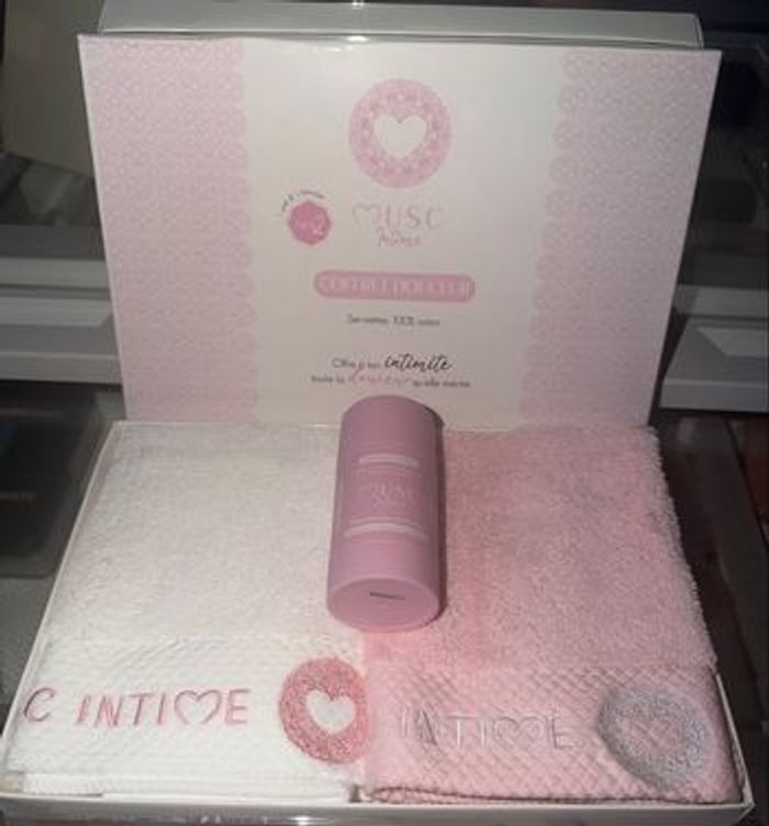 Boîte avec deux serviette prix de base 15.90€ Deo musc intime x2 prix de base 37€