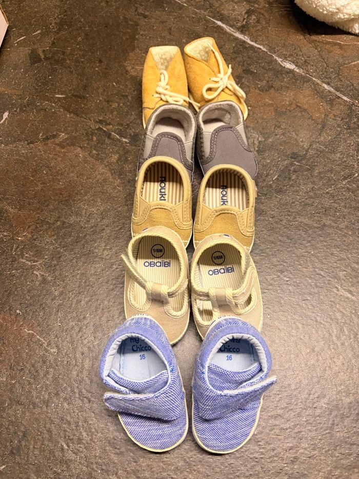5 paires de chaussures bene garçon, taille 16 ou 1/6 mois. Toutes en très bon état
