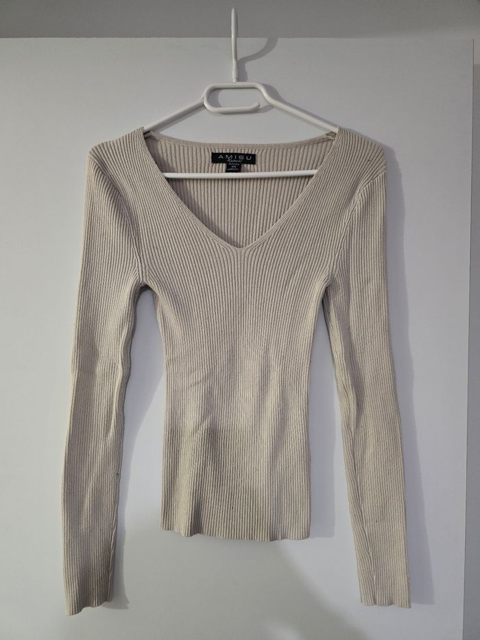 Pull fin col v beige Très peu porté 2 de disponible 4 euros l'unité