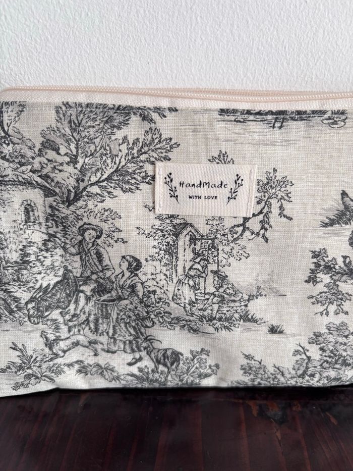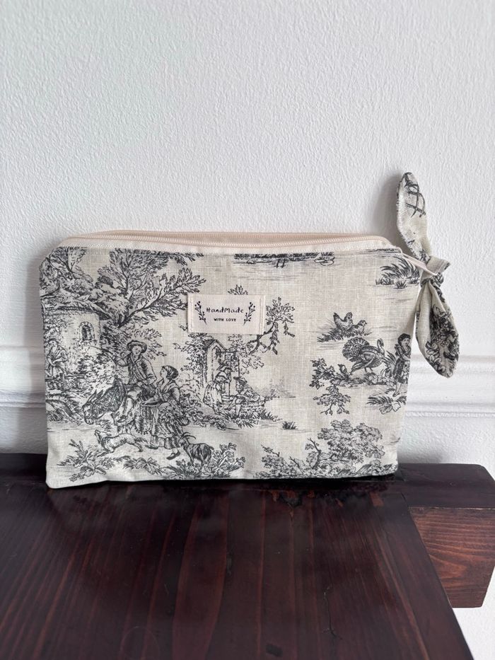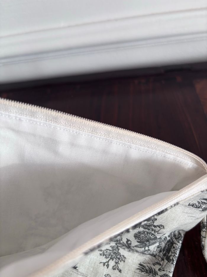 Cousue main Extérieur Coton motif Jouy Entièrement doublée Dimensions environ 19/13