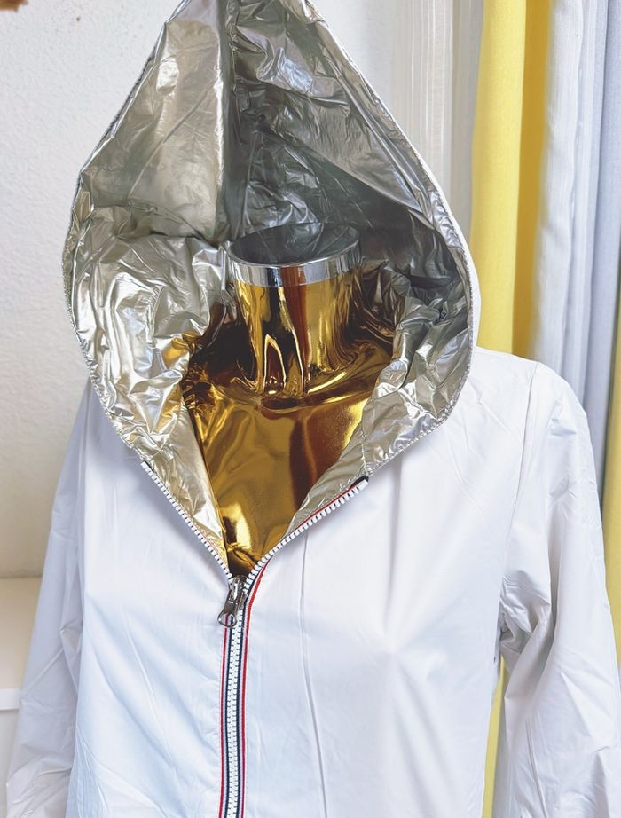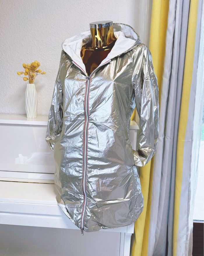 Veste long (mi cuisses) réversible et imperméable avec ouate blanc doré taille S 100% polyamide… Les dimensions aisselles à aisselles:50cm Longue:80cm