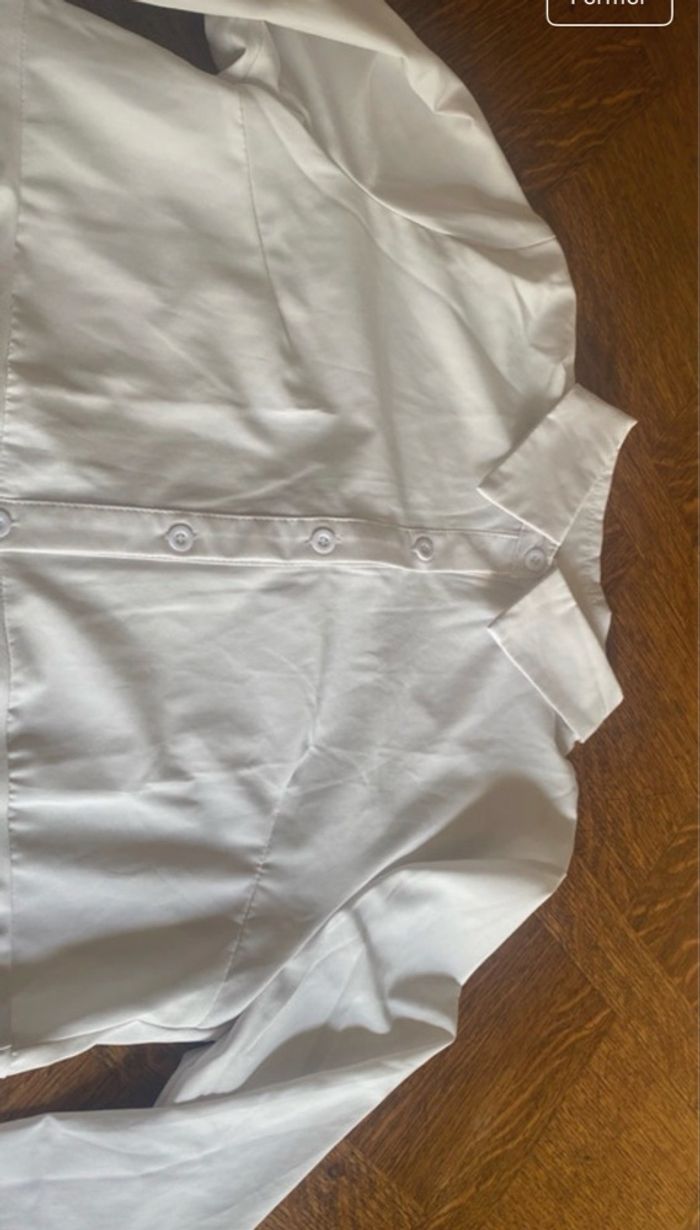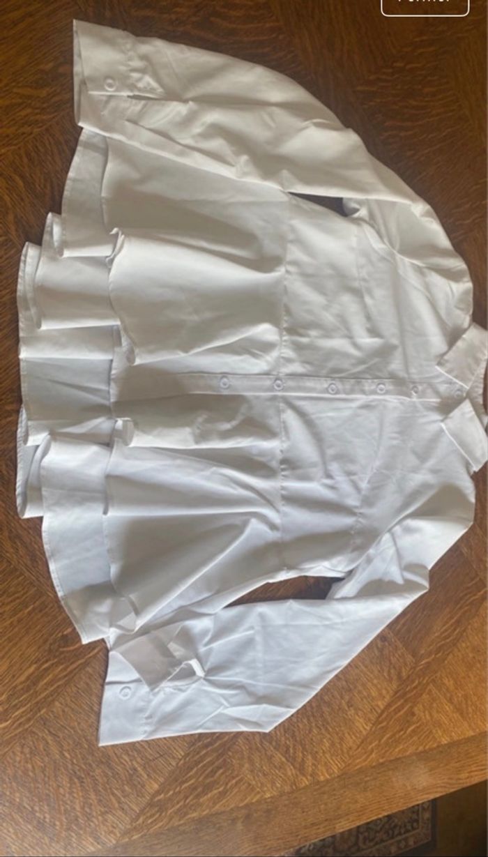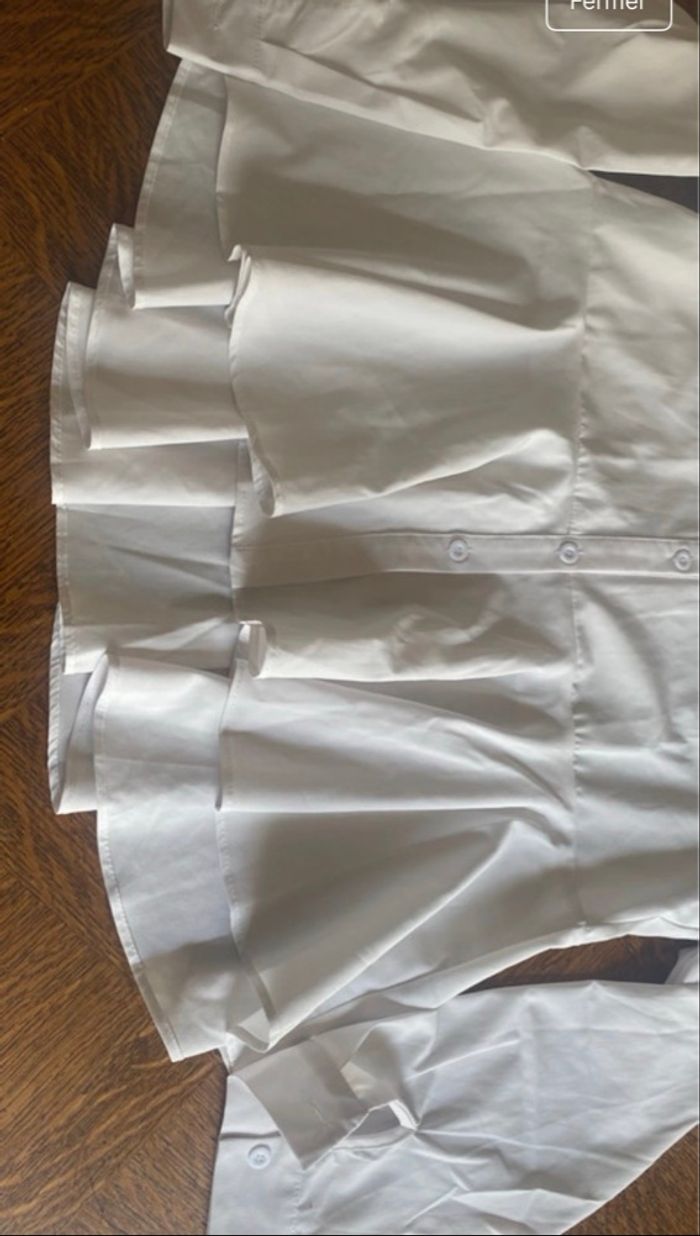 Chemise blanche à manches longues portée quelques fois. Le bas de la chemise est en volant. Si cet article ne vous convient pas ou n'est pas à votre goût. Vous pouvez faire un petit tour dans mon dressing, je suis sure que vous trouverez votre bonheur.