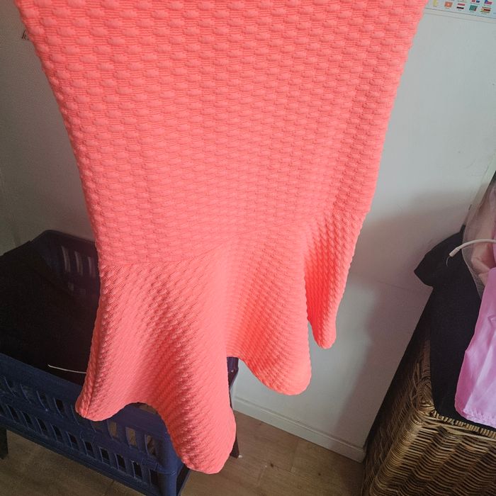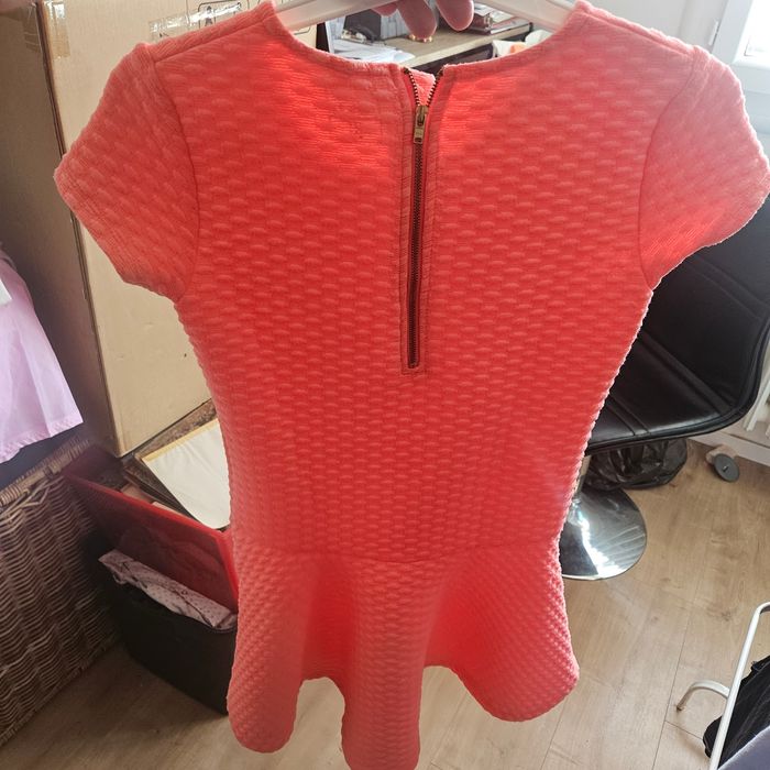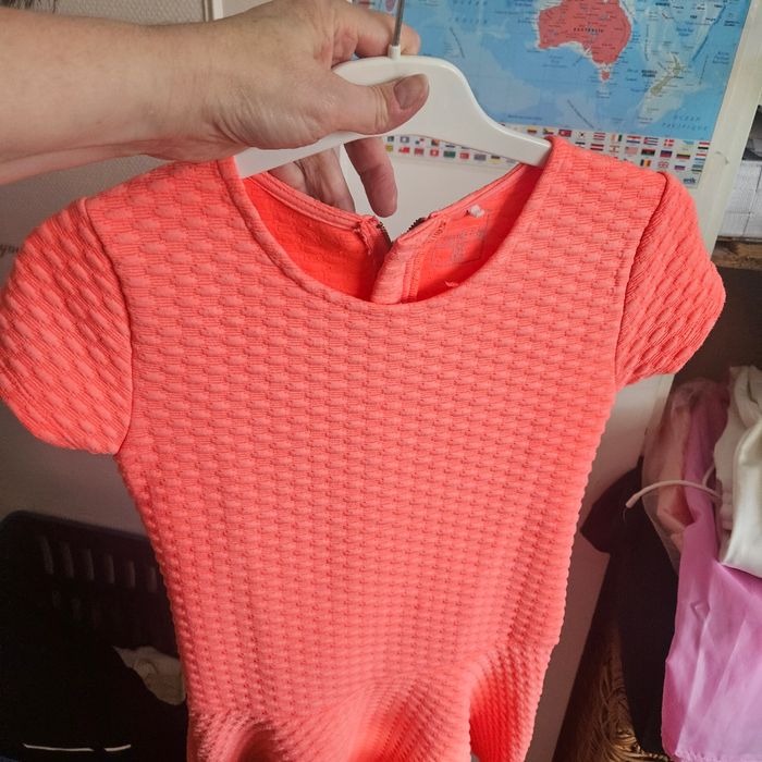 1 robe fille manche courte jupe évasée. fermeture zipp dos couleur saumon fluo T 12 ans bon état 1€