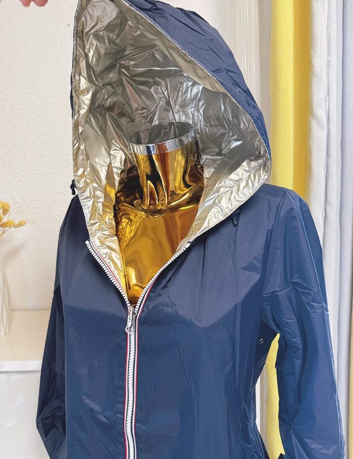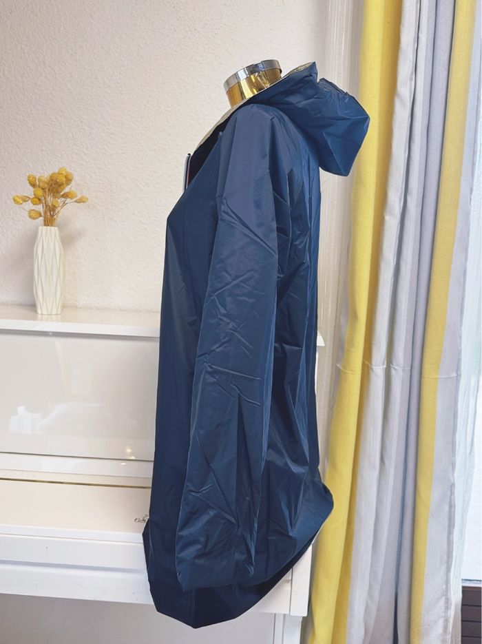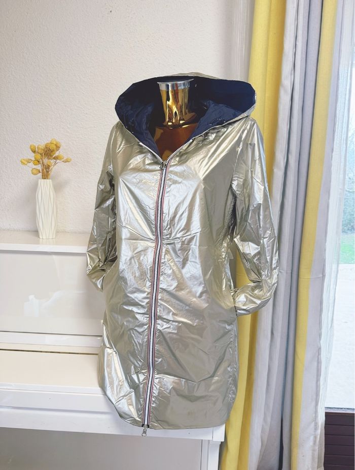 Veste long (mi cuisses) réversible et imperméable avec ouate marine doré taille M 100% polyamide… Les dimensions aisselles à aisselles:52cm Longue:80cm