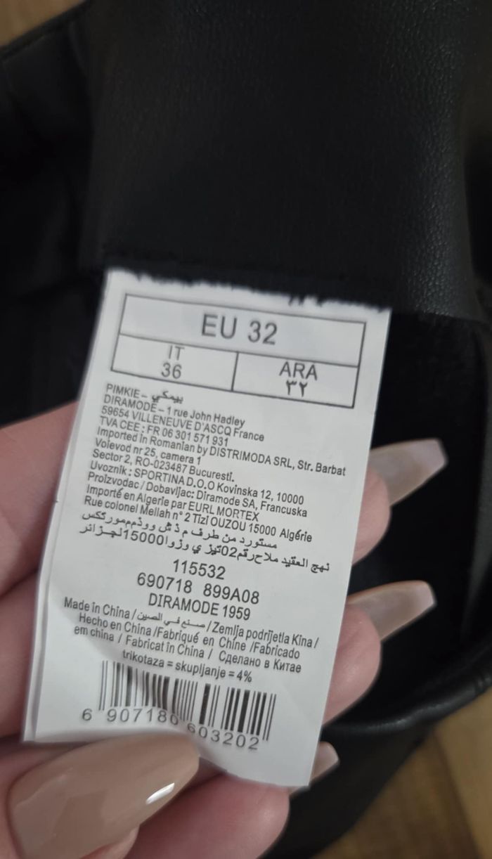✨ Description Superbe jupe PIMKIE Collection effet cuir noir, coupe droite légèrement évasée, ultra tendance et facile à porter. Modèle structuré avec : ✔ Taille haute ✔ Fermeture zippée discrète au dos ✔ Fentes subtiles à l’avant ✔ Matière effet cuir lisse et moderne Parfaite avec pull oversize, chemise ou top ajusté. Un indispensable du dressing chic & rock 🖤 🆕 Neuve avec étiquette – jamais portée. 📌 Informations essentielles Marque : Pimkie Collection Taille : 32 (EU) Longueur : 39 cm Largeur taille : 32 / 33 cm à plat Matière : Effet cuir (polyuréthane / polyester) Couleur : Noir État : Neuve avec étiquette ✅ 🌟 Pourquoi l’acheter ? ✔ Coupe flatteuse ✔ Effet cuir intemporel ✔ Facile à styliser ✔ Taille recherchée ✔ État neuf 📦 Envoi rapide et soigné La couleur du vêtement peut légèrement varier en raison des conditions d’éclairages. Veuillez examiner attentivement les photos, les détails et les mesures fournies. Pour toutes informations complémentaires n'hésitez pas à me contacter.