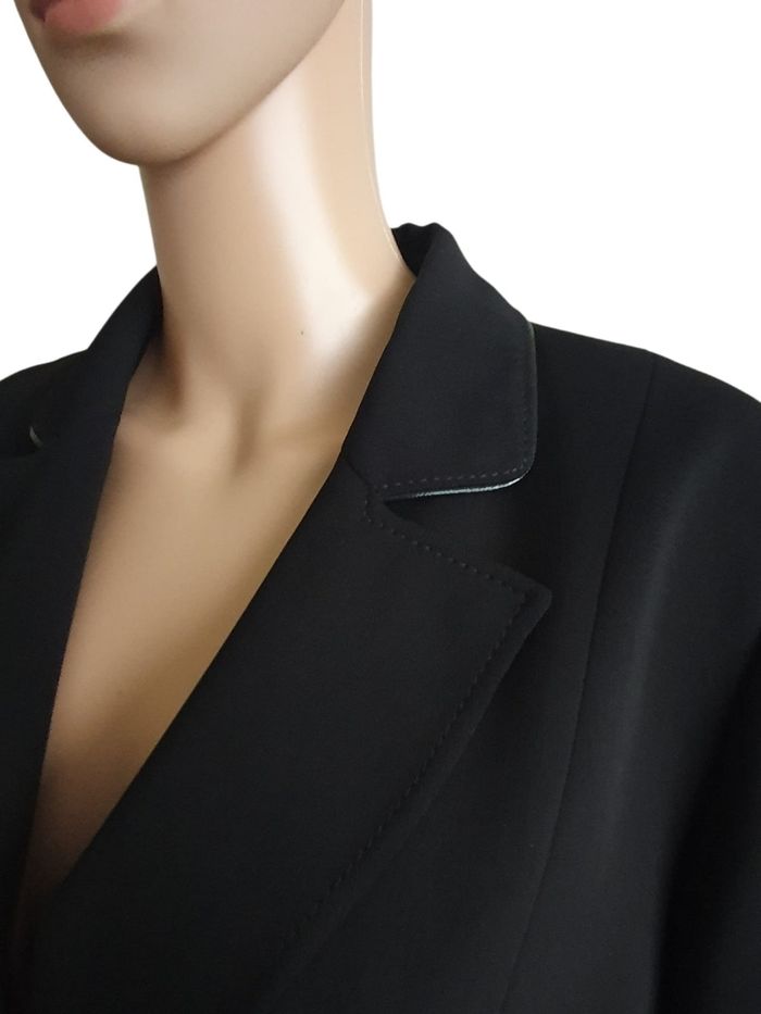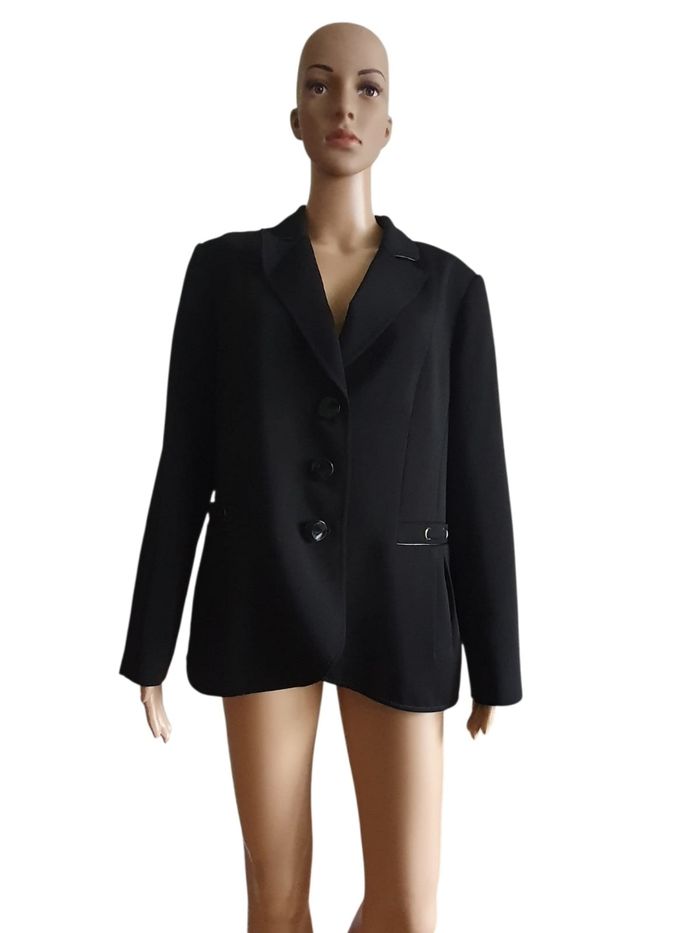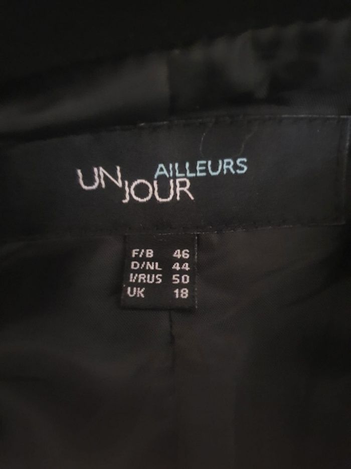 L'élégance absolue! Cette veste Un jour Ailleurs est tout simplement neuve ! (Le lien de l'étiquette est encore présent !). C'est la pièce indispensable pour une silhouette structurée et raffinée.  On adore ses détails discret en satin qui captent la lumière sur le col et les poches. 🖤 État impeccable : Neuve, jamais portée. Une occasion rare pour cette marque.  ♥️ Coupe Prestige : Un Jour Ailleurs est réputé pour son savoir-faire sur les grandes tailles.  💜 Une fermeture par 3 boutons travaillés et un col à revers classique agrémenté d'un fin liseré satiné pour une touche de lumière.  🩷 Entièrement doublée pour un tombé impeccable et un confort optimal tout au long de la journée.  📏 Marque : Un Jour Ailleurs  Taille : 46 Épaule à épaule : 42cm Aisselle à Aisselle : 52cm  Longeur : 67cm  Matière : 100% Polyester  (Infroissable et facile d'entretien) Prix neuve: 250€ 🌟 Neuve sans étiquette  📨 Envoi rapide et soigné