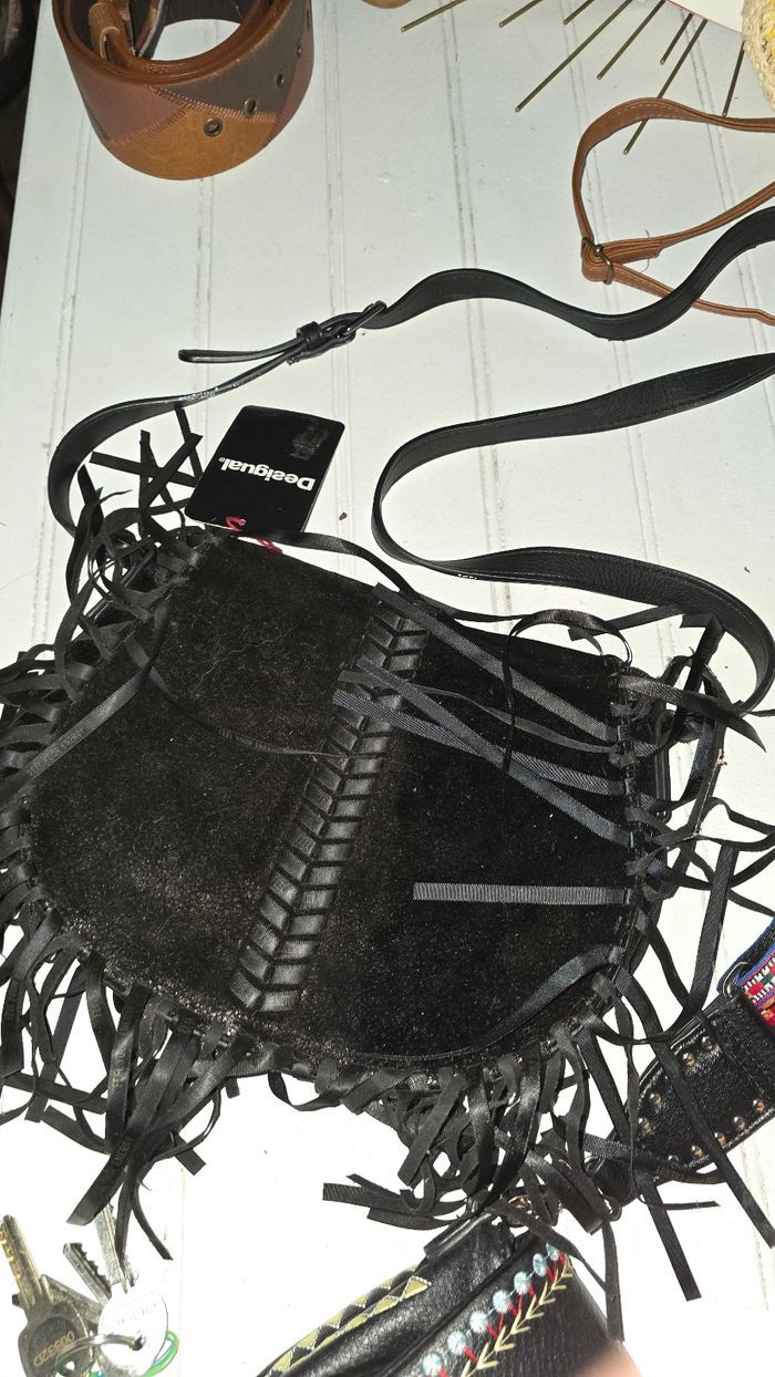 Sac bandoulière desigual neuf avec étiquette 🏷 de couleur noir et doré et franges
