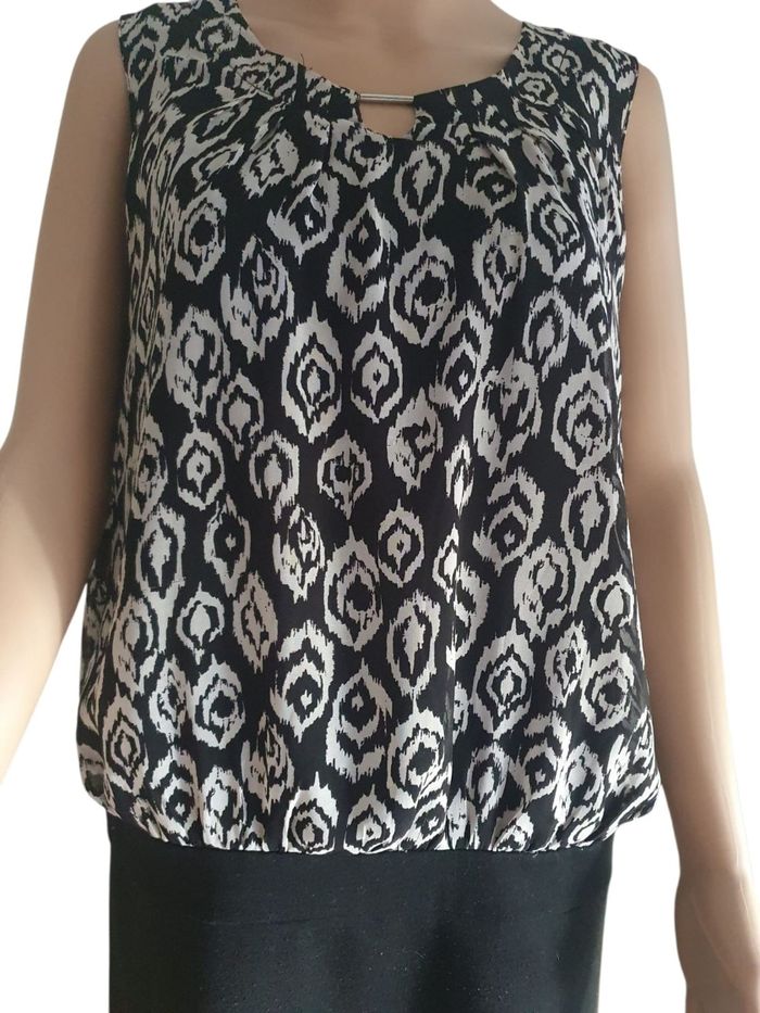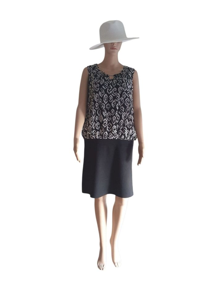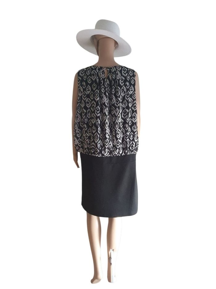 Valorisez votre ligne avec cette magnifique robe de la marque K Woman alliant confort et élégance moderne. Son imprimé "ikat" noir et blanc apporte une touche sophistiquée,  idéale pour une journée au bureau ou une sortie estivale.  🖤 Design 2-en-1 : Un haut fluide au motif graphique noir et blanc,  avec un effet légèrement blousant et une jupe noire conçue dans un mélange de viscose et d'elasthanne offrant une belle liberté de mouvement et un tombé impeccable.  🩷 Une jolie ouverture en goutte d'eau avec un détail métallique argenté qui illumine le décolleté.  💚 Robe Caméléon à porter avec des sandales pour un look décontracté ou des escarpins et un blazer pour une allure plus habillée.  📜 Marque : K Woman  Taille 46  🧶 Haut : 100% Polyester (matière fluide et Infroissable)  Bas: 76% Polyester 20% Viscose 4% Elasthanne  📏 Pour vous assurez qu'elle vous ira parfaitement fiez-vous à la grande sagesse de Maître Ruban ⤵️  Aisselle à Aisselle : 58cm Taille : 51cm Longeur : 93cm 🌟 Très bon état 🌟    📍 Robe chic Taille 46, Look bureau , Robe d'été, noir et blanc,  Taille Plus , Curvy Fashion