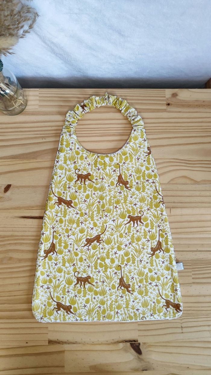 Grand bavoir élastique singe 🐒 Idéale pour la crèche, la cantine, ou à la maison ! 📏 Dimensions : 38 cm depuis l'épaule, 34 cm depuis l’encolure x 30 cm au plus large. 👕 Taille : 18 mois/6 ans ✨ Coton oekotex + éponge blanche absorbante. ✅ Facile à enfiler grâce à l’encolure élastique 🧵 Confection soignée, belle qualité 📬 Envoi rapide et soigné #bavoirelastique #bavoircantinematernelle