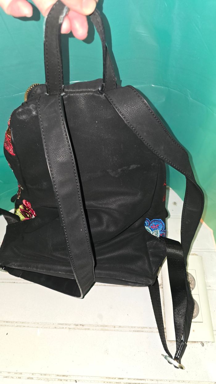Sac a dos desigual 🌸 🌹 fleuri sur fond noir bien porté malheureusement présente quelques légères imperfections du a l'usage.