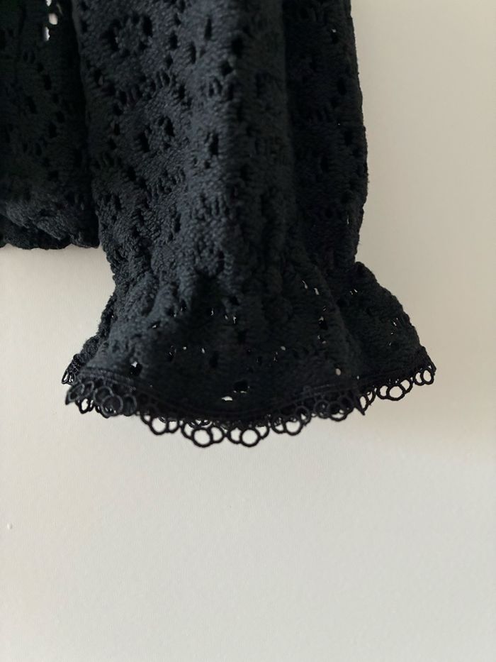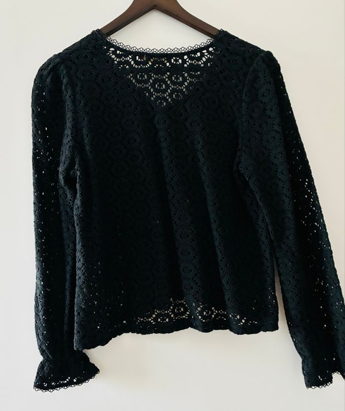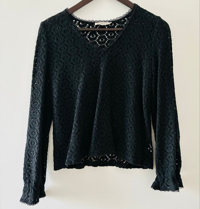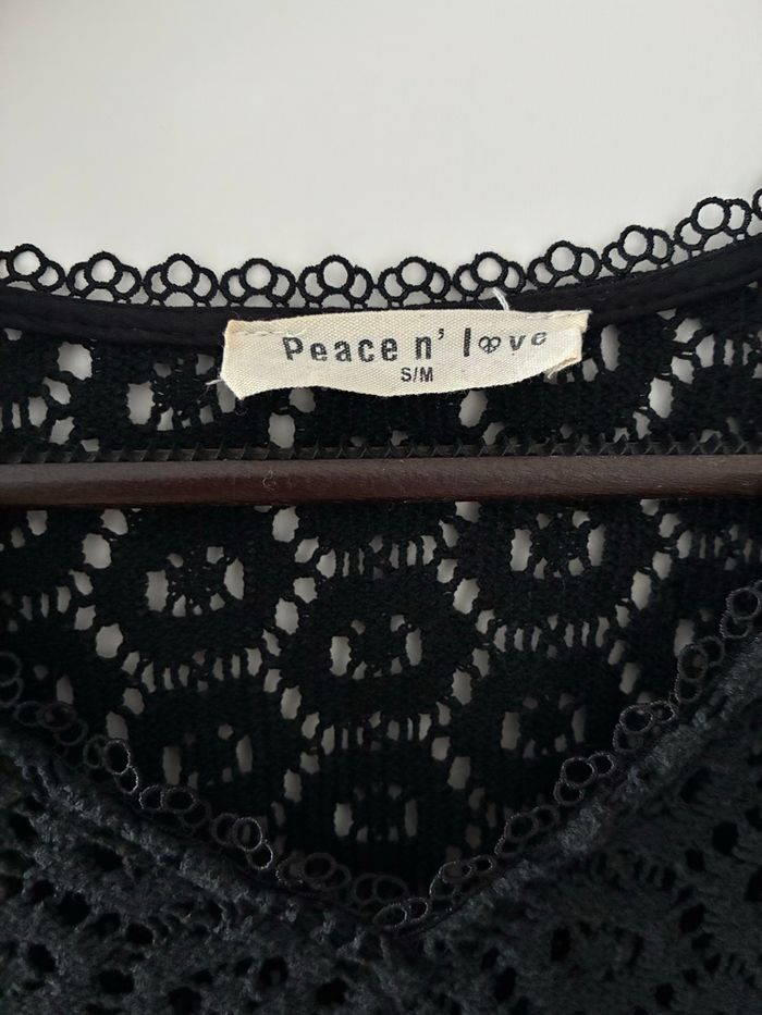 Top manches longues ajouré dentelle noir Col V Parfait état porté une fois Marque peace n’ love acheté sur easy clothes Taille S/M correspond à un 36/38 Coton Aucun défaut, aucune tache. Envoi rapide et soigné N’hésite pas à me faire une offre raisonnable !